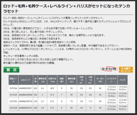 【商品概要】ロッド+毛鉤+毛鉤ケース+レベルライン+ハリスがセットが専用バッグに入ったテンカラセット。