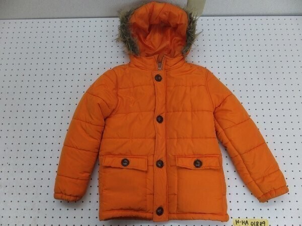 BACK NUMBER KIDS バックナンバー キッズ ファーフーディー 比翼 中綿 ジップコート 140 オレンジ です。