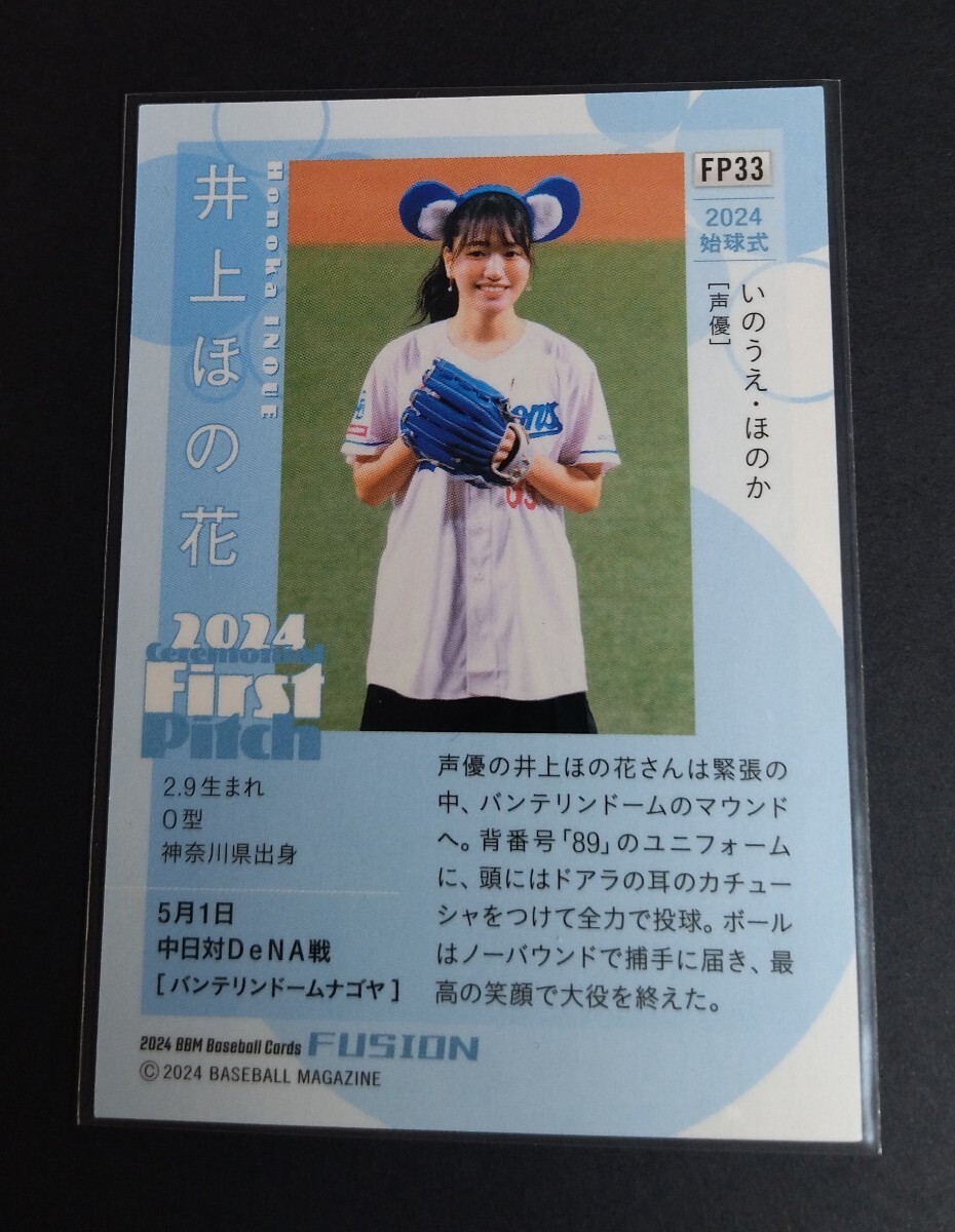 2024年BBM FUSION 井上ほの花(声優)First Pitch!始球式カード。中日vsDeNA戦バンテリンドームナゴヤ。No,FP33。