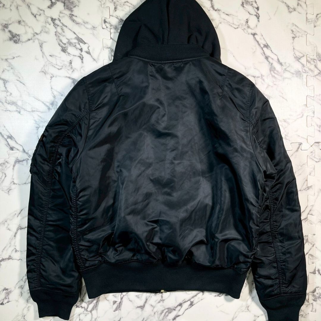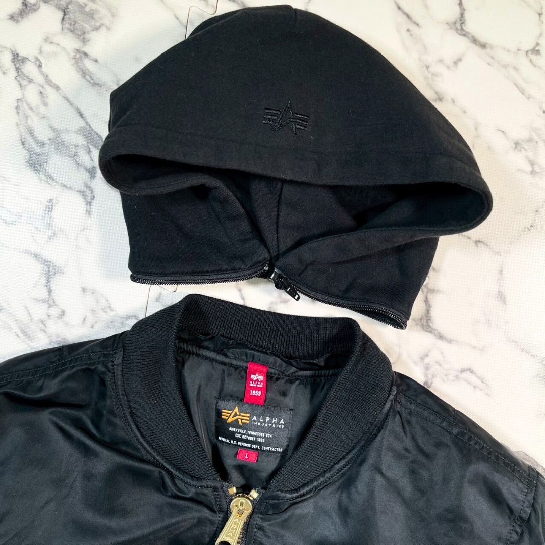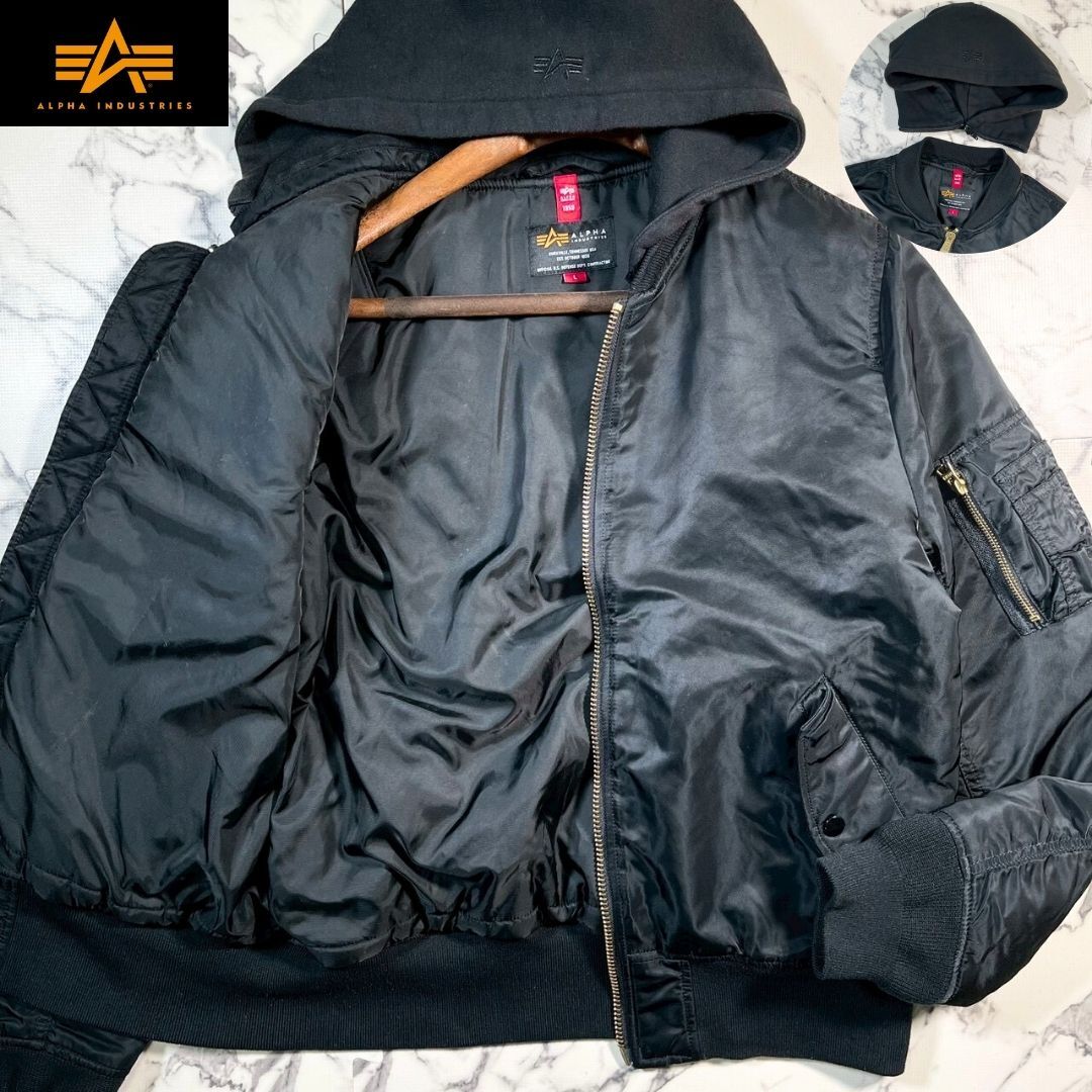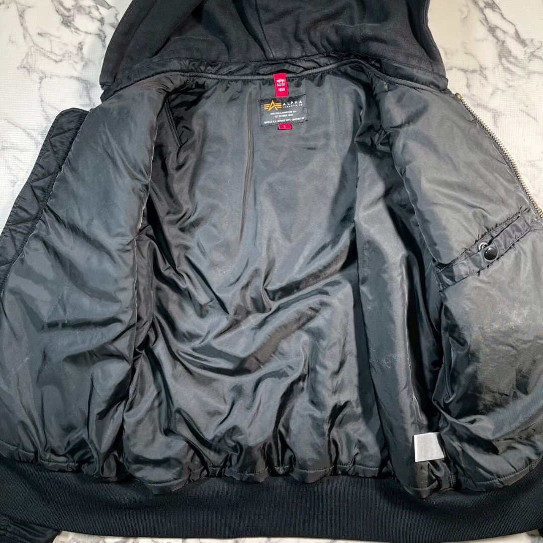 美品/フード着脱可(L)●ALPHA MA-1 2WAY フライトジャケット アルファ スウェット ブラック 黒 アウター ブルゾン AIR ミリタリー 秋冬