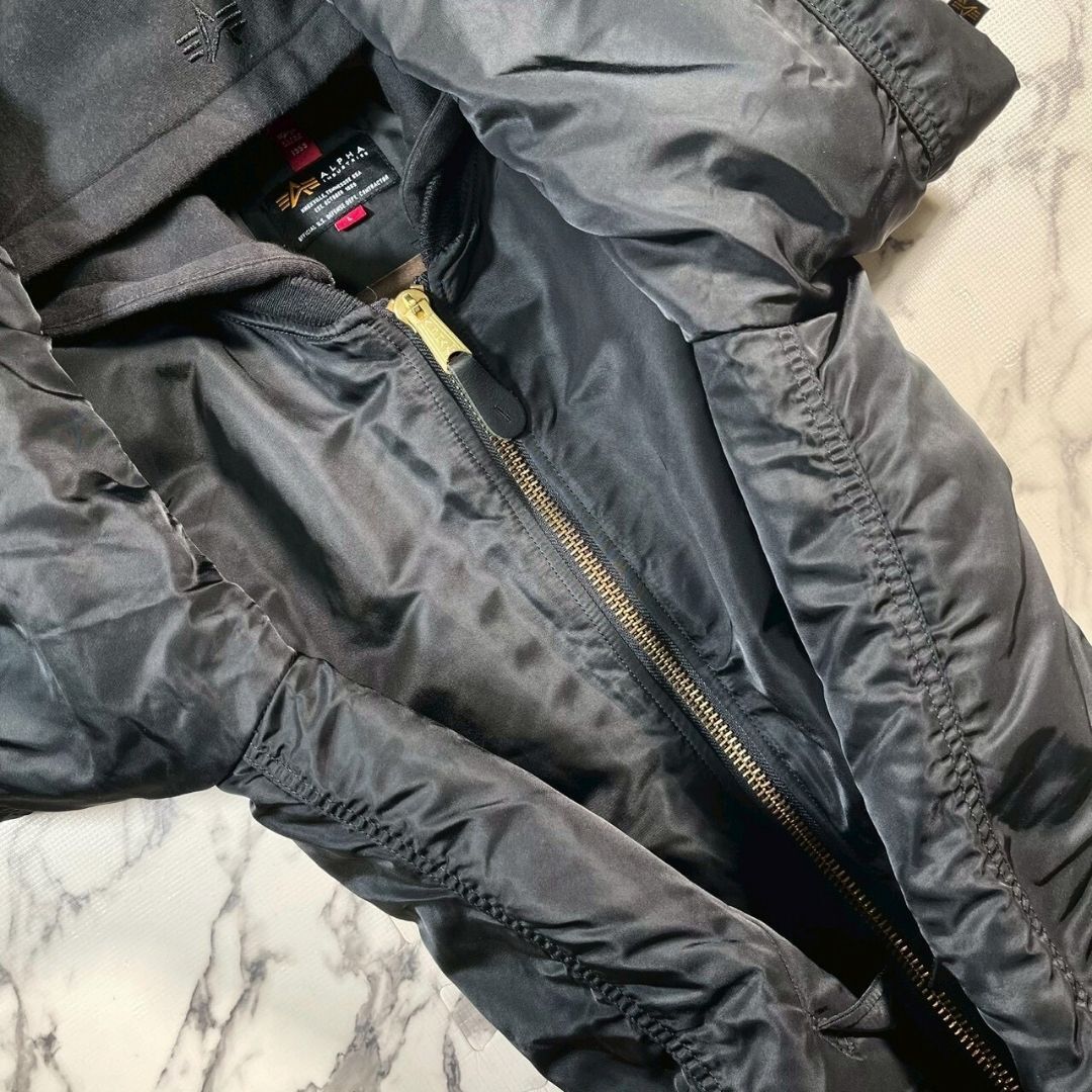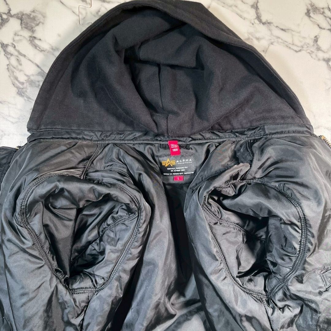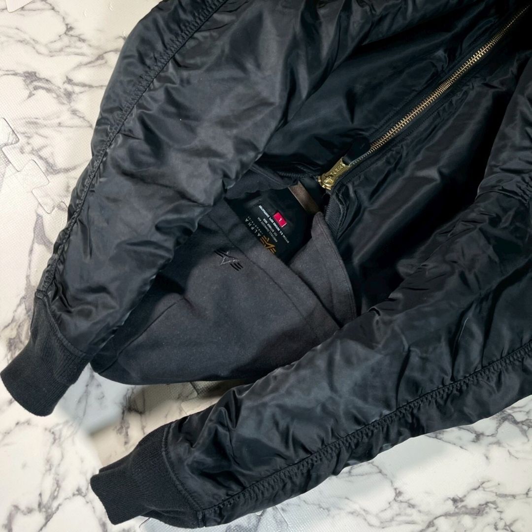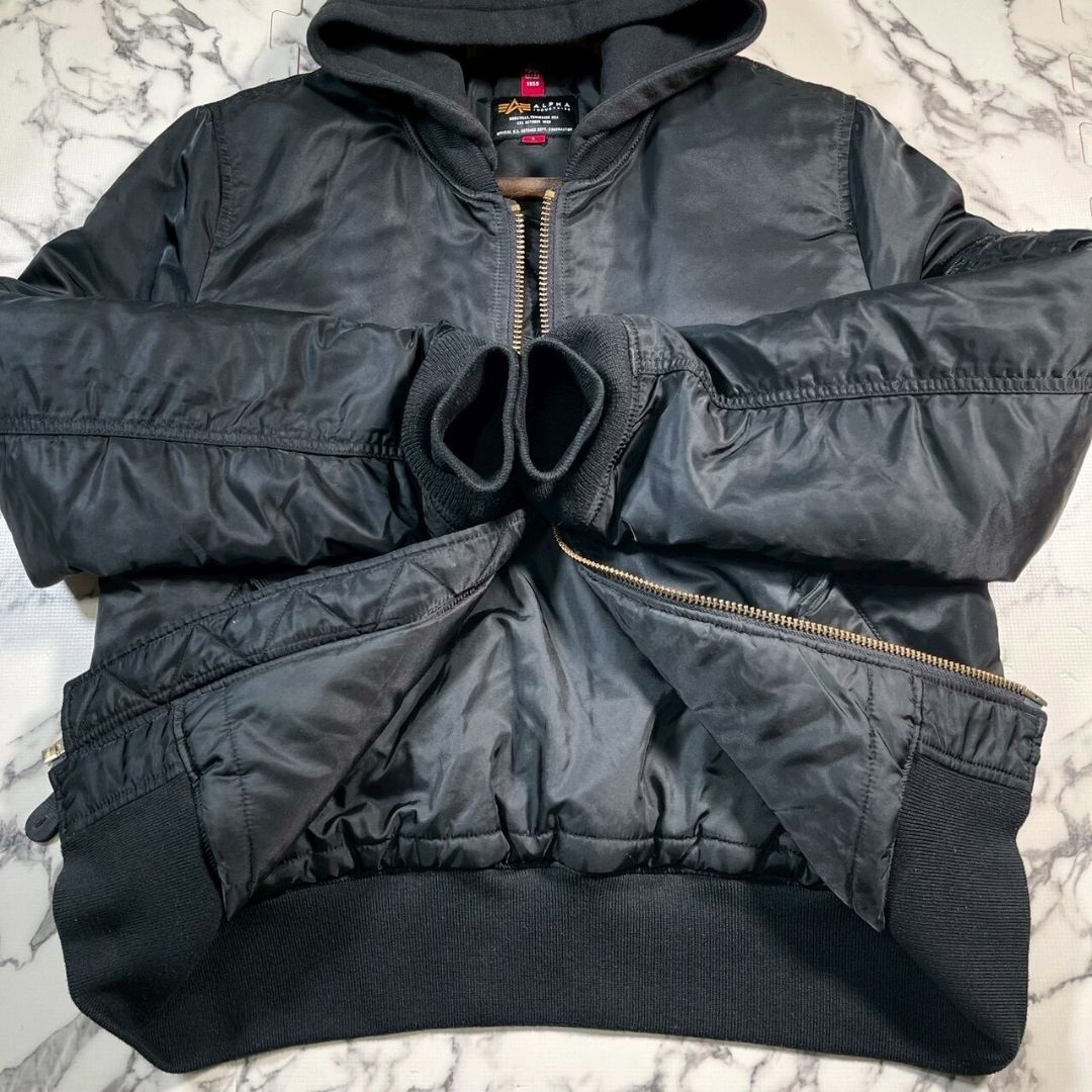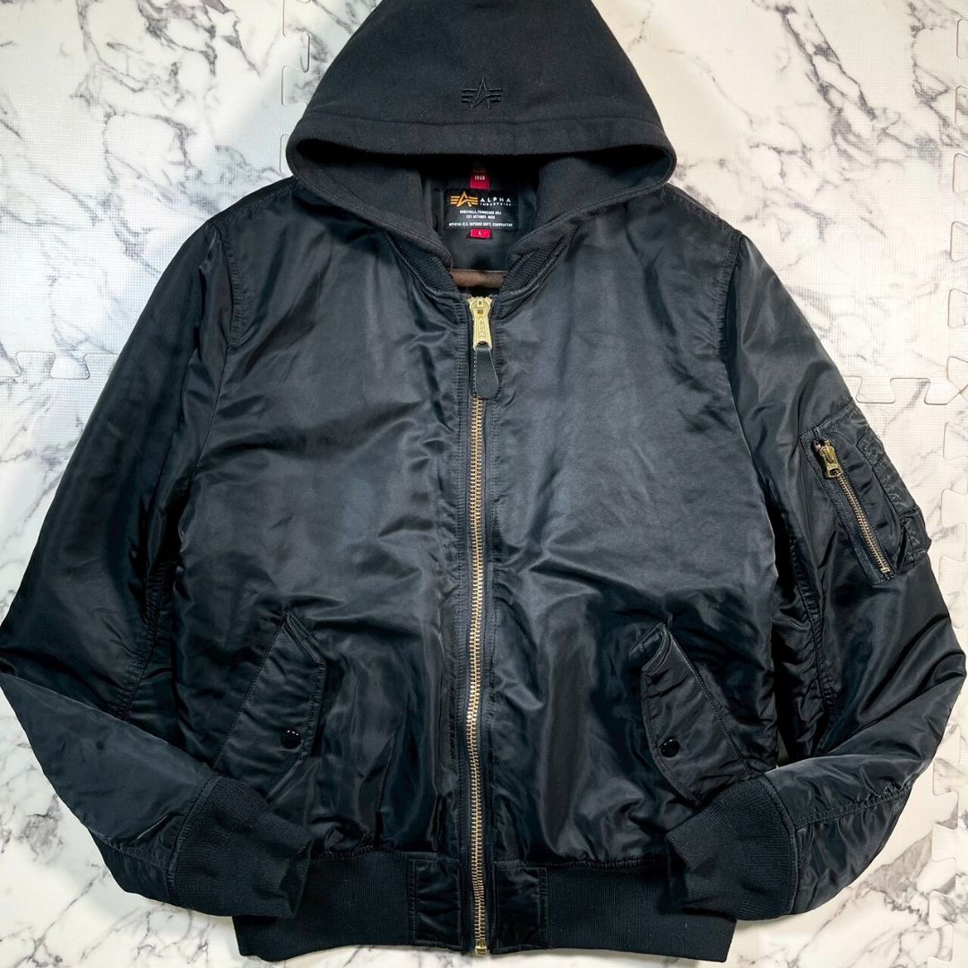 美品/フード着脱可(L)●ALPHA MA-1 2WAY フライトジャケット アルファ スウェット ブラック 黒 アウター ブルゾン AIR ミリタリー 秋冬