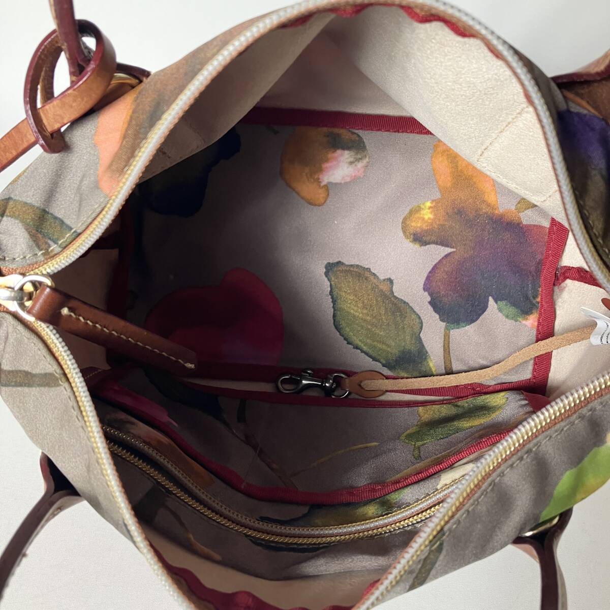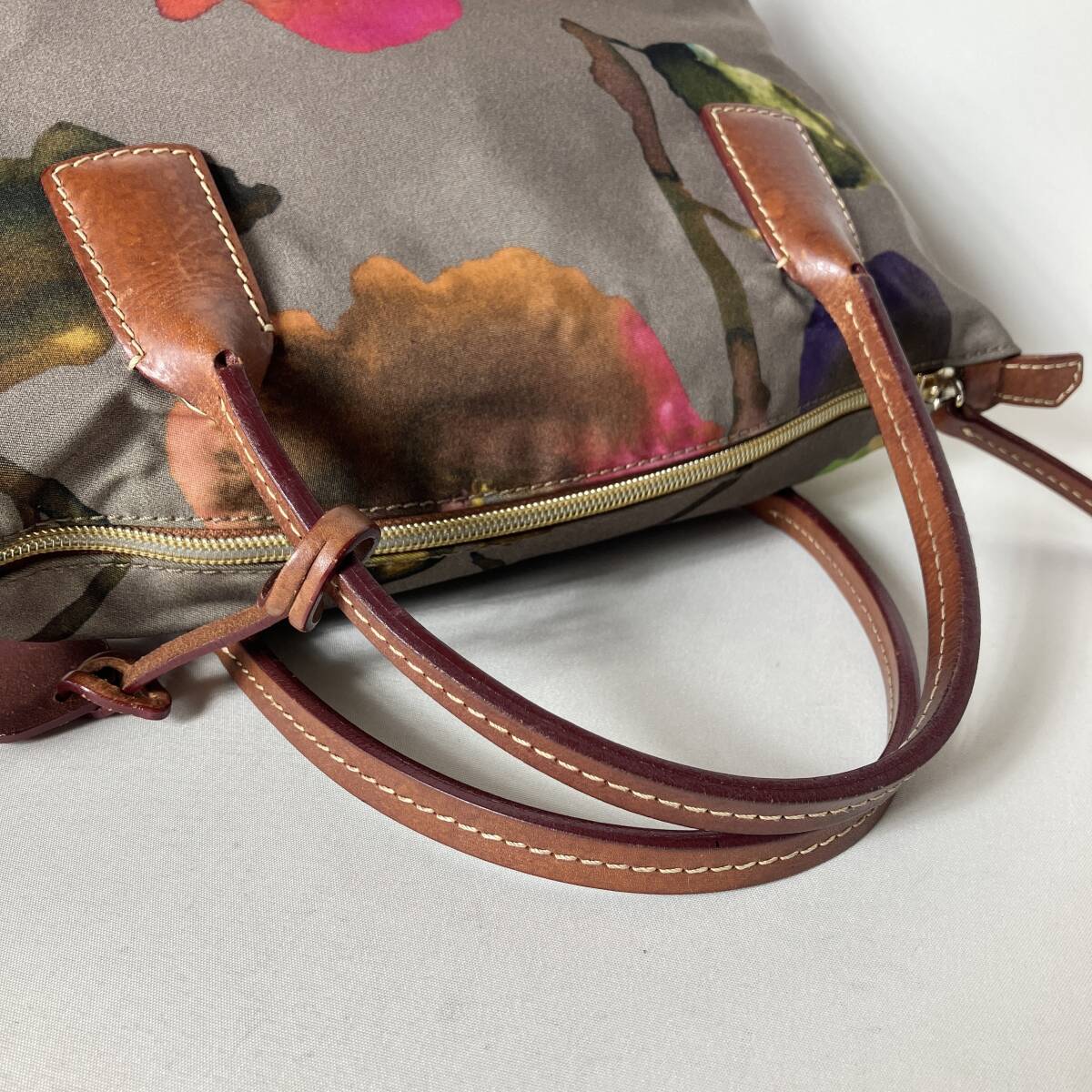 710B392| 美品 【 ブランド名 】ROBERTA PIERI ロベルタピエリ 【 アイテム名 】- 【 カテゴリ 】ハンドバッグ 【 素材 】ナイロン 本革 レザー 【 カラー 】ブラウン グレー 【 その他 】花柄 【 付属品 】ロゴチャーム 【 状態 】外側:少々スレあり ⇒ご購入前に必ず写真にてご確認ください 【 サイズ 】(cm) ※実寸値 縦×横×幅:21×23×13.5 ハンドル:33 【 仕様 】 ( 収納ポケット ) 外側:なし 内側:ファスナー1,オープン2 ( その他 機能 ) キーストラップ×1 《 備考 》 ・コピー品の類は一切取り扱っていませんのでご安心ください。中古品は商品の状態に合わせて価格を決めていますので低価格の場合もございますが正規品に間違いありません。 ・商品の状態につきましてはこれまでの経験に基づき評価させていただいておりますが、あくまで個人の主観となりますので神経質な方は購入をお控えください。 ・出来る限り現物の状態が分かるように出品しておりますが記載のない不明点等ありましたらお気軽にコメントいただければと思います。