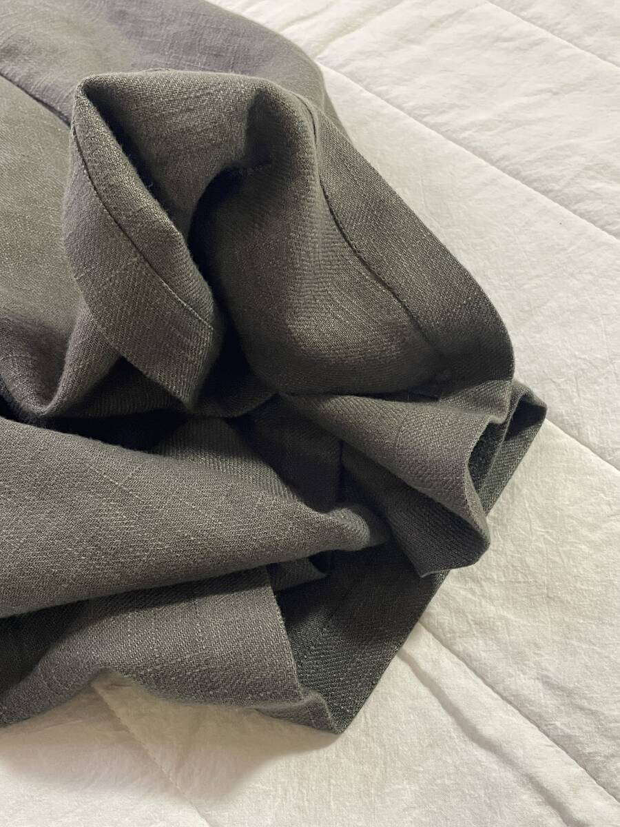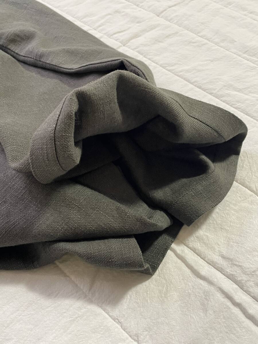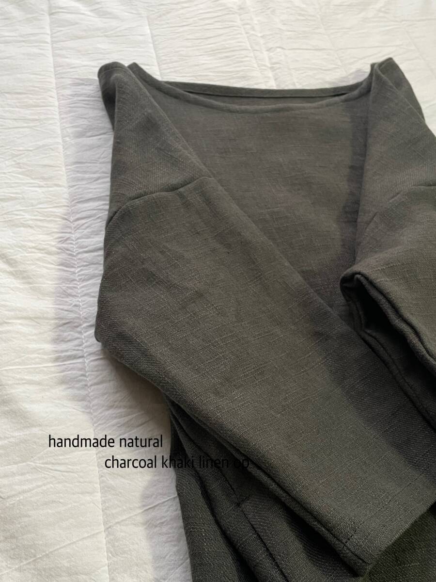 襟周りのバイアス&両サイドのポケットは共布リネンを使用しております。