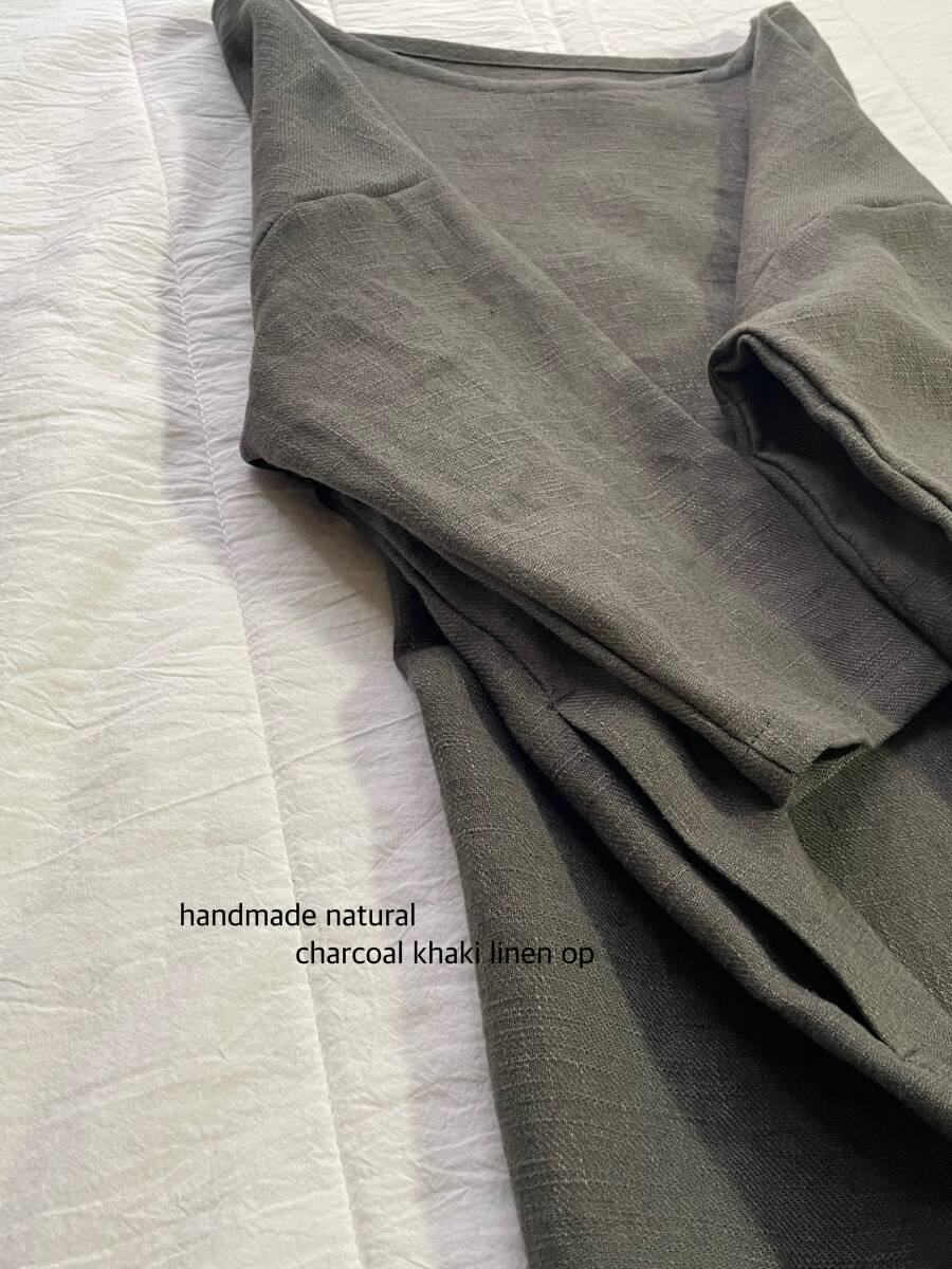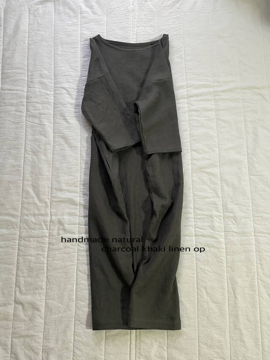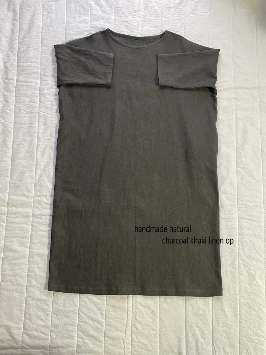 しっかりとしたリネン生地ですのでこれから寒くなる時期でもインナー等で暖かく着回しができるワンピースに仕上がっております。