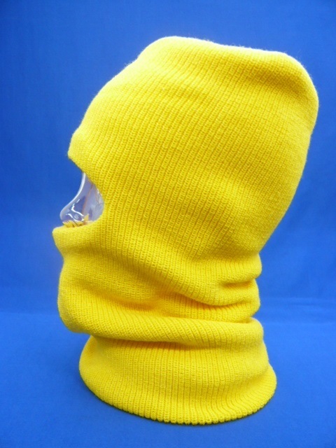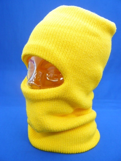 ◆アクリル 丸天井タイプの目出しニット帽 黄◆