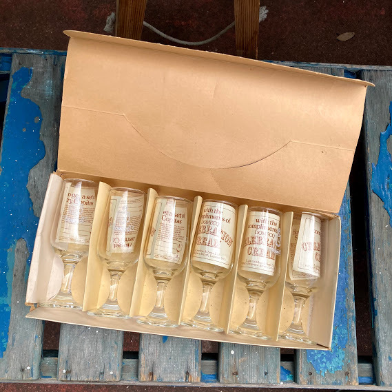 イギリスより入荷しました。sherry copita CELEBRATION CREAM の箱入りグラス6個セットです。キャンペーンのノベルティに使用されていたもののようで、箱付未使用です。グラスに記された騎士のイラストがイギリスらしくカッコいい印象に。箱にはダメージがありますが、グラス本体は綺麗な状態です。小さめのサイズなので食前酒などに良さそうですね。福岡市南区の店舗にてお渡しもできますのでお気軽にどうぞ!