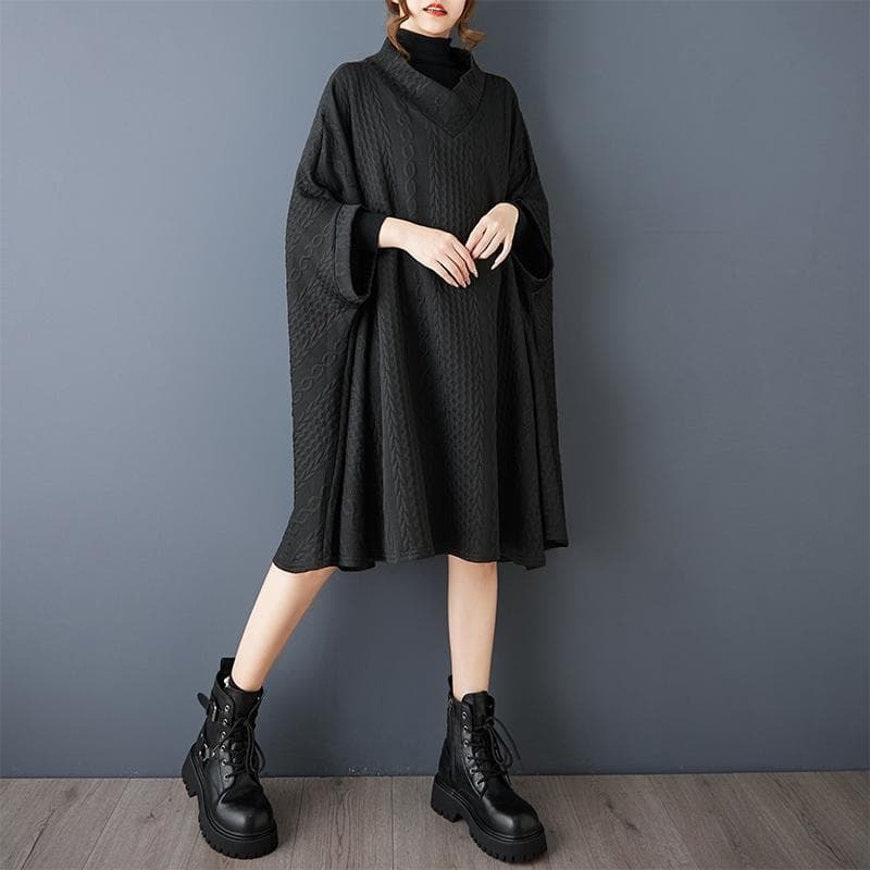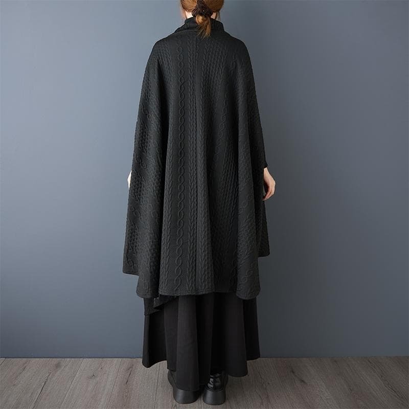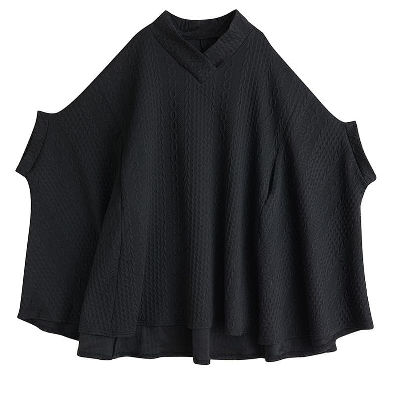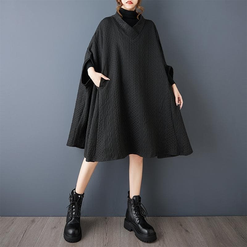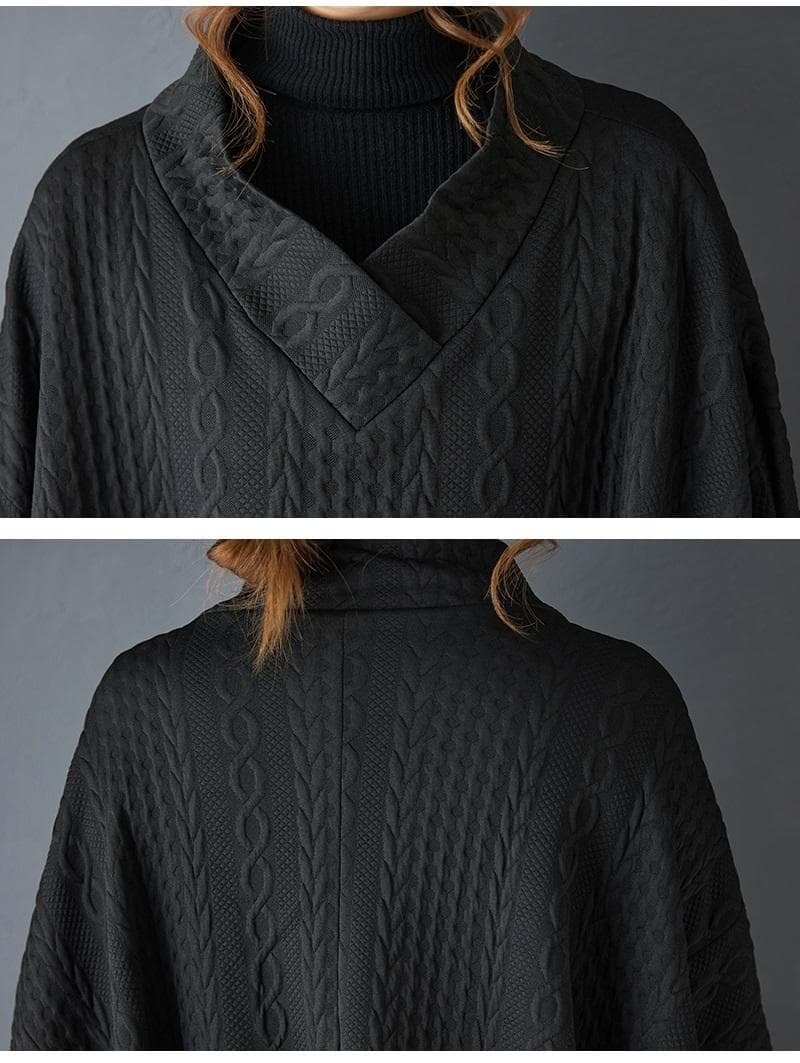新品 秋冬 大きいサイズ 4L 5L ゆったり チュニック ポンチョ コート 黒 Vネック