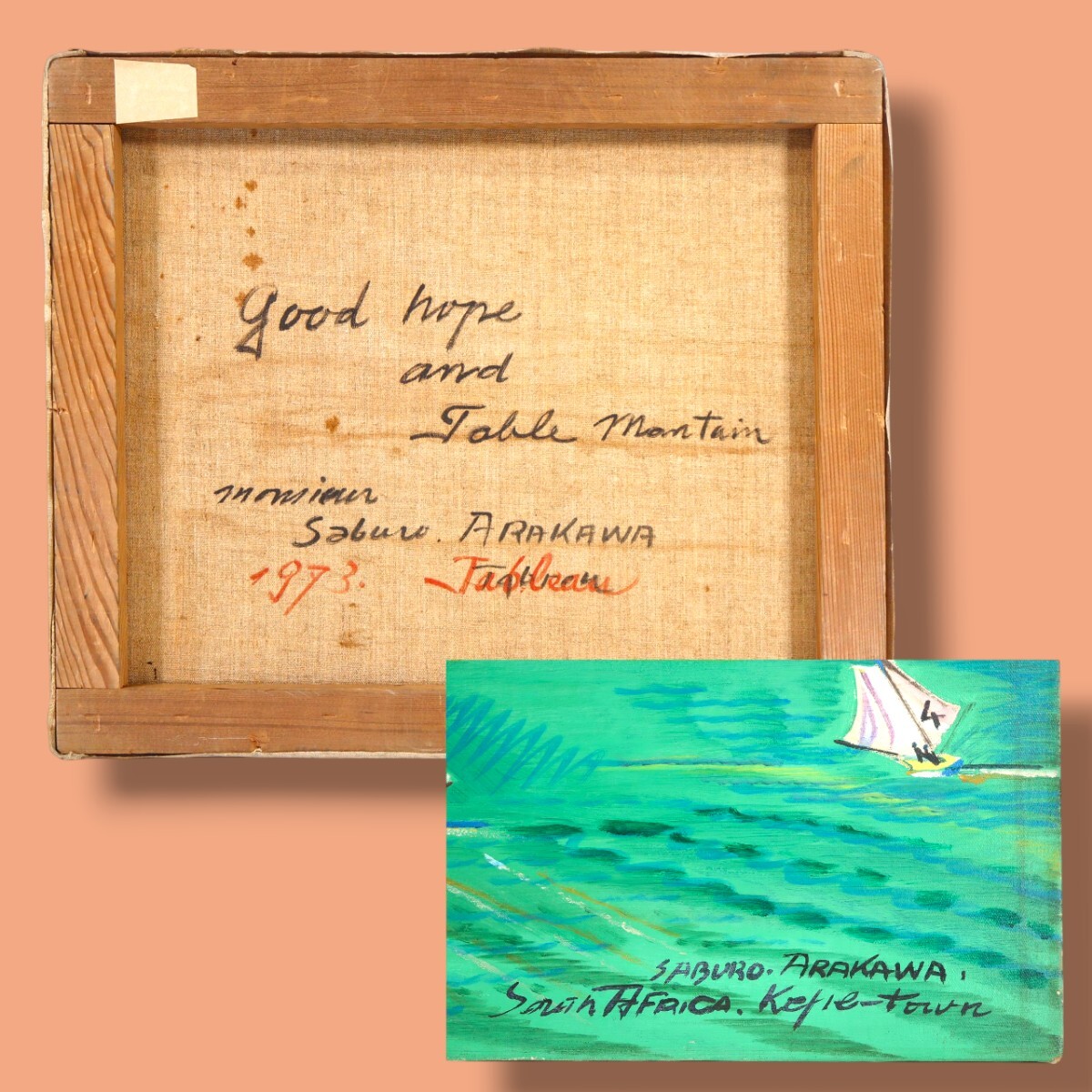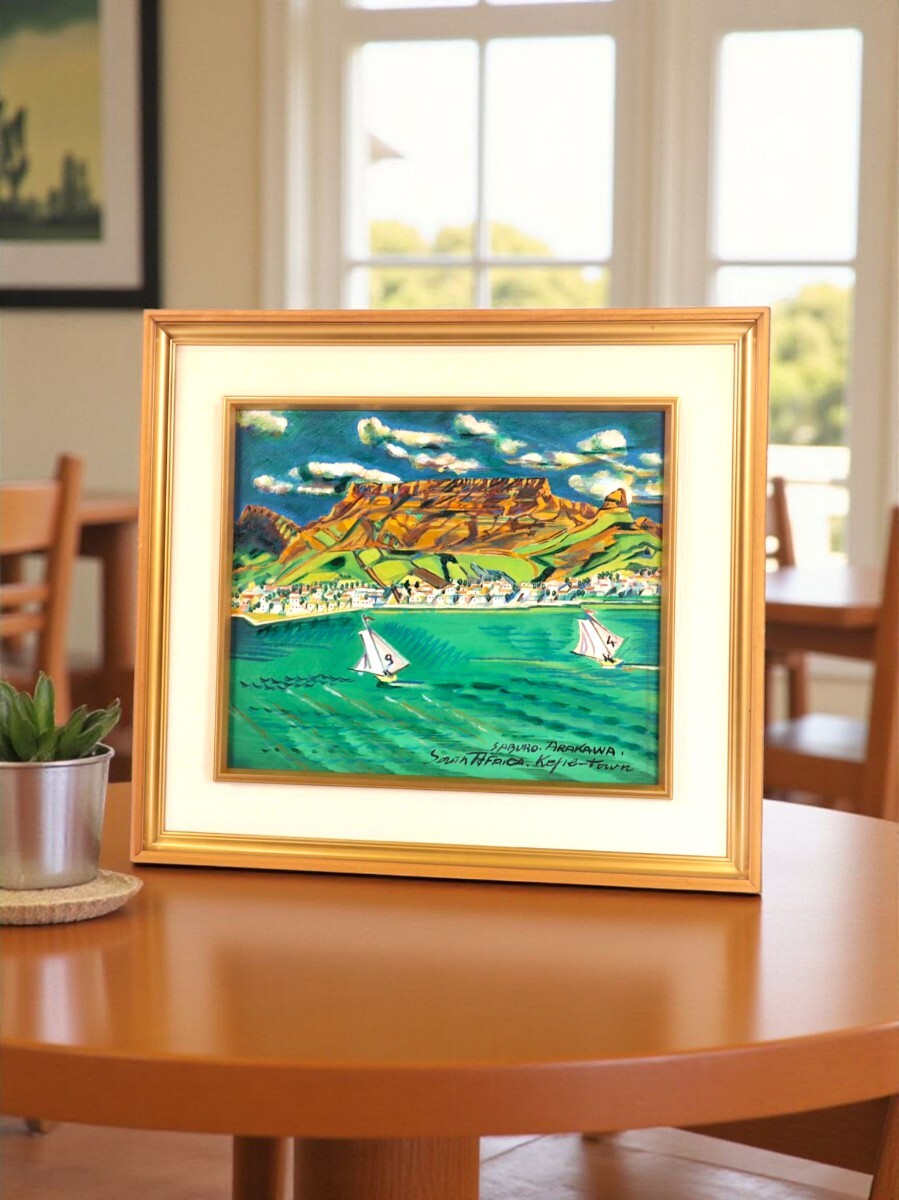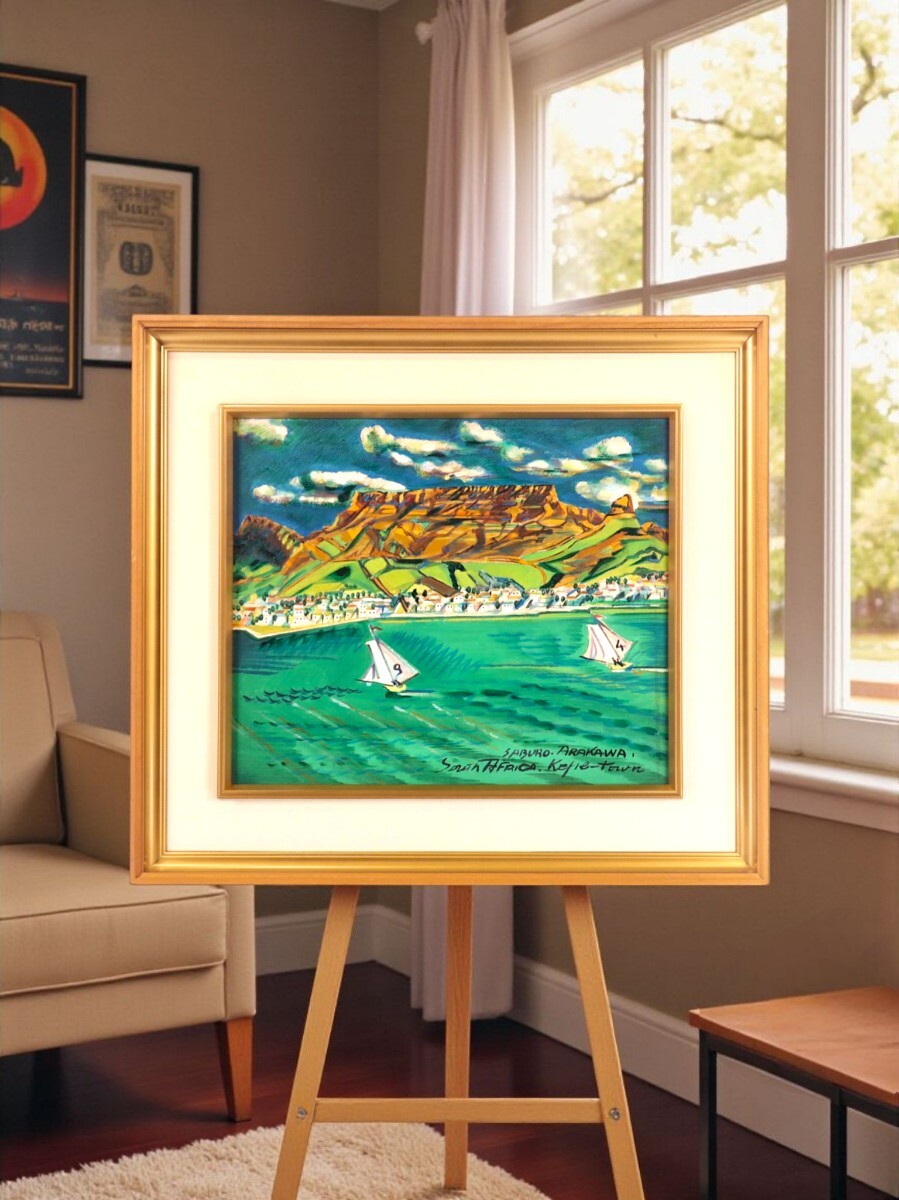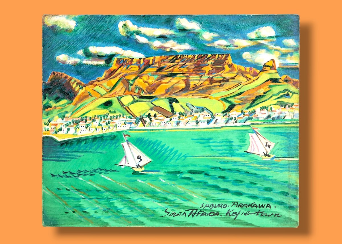 ★荒川三郎 油彩「希望峰とテーブルマウンテン」★