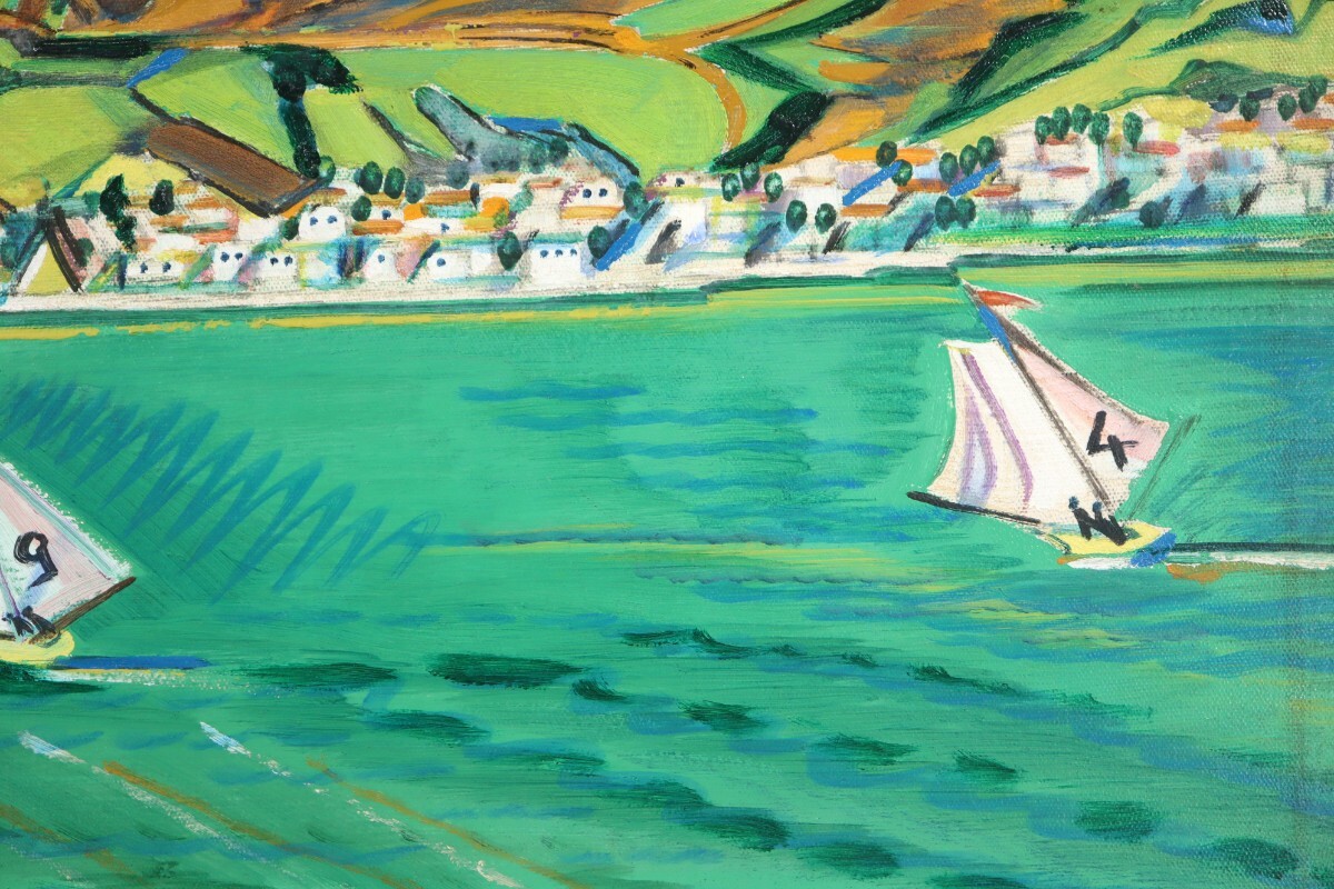 白帆と家並みの明度対比が空間を引き締め、