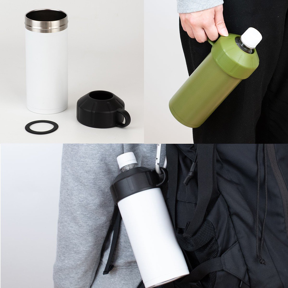 500ml~600mlのペットボトルが入るペットボトル専用の保冷容器です。 フック穴付で、カラビナ等を使ってカバンにぶら下げて持ち運べます。 ◆結露しにくいステンレス真空断熱構造で冷たさが長持ちします。テーブルやカバンの中を水滴で汚す心配もありません。 ◆パーツが分かれていてお手入れしやすい構造です。 ◆ペットボトルのまま入れられるので、炭酸飲料やスポーツドリンクも保冷できます。 ◆容器本体にペットボトルを入れて、カバーを閉めるだけで使えます。 ※本品は円柱形のペットボトル専用です。ペットボトルの形状によっては使用できない場合があります。 |