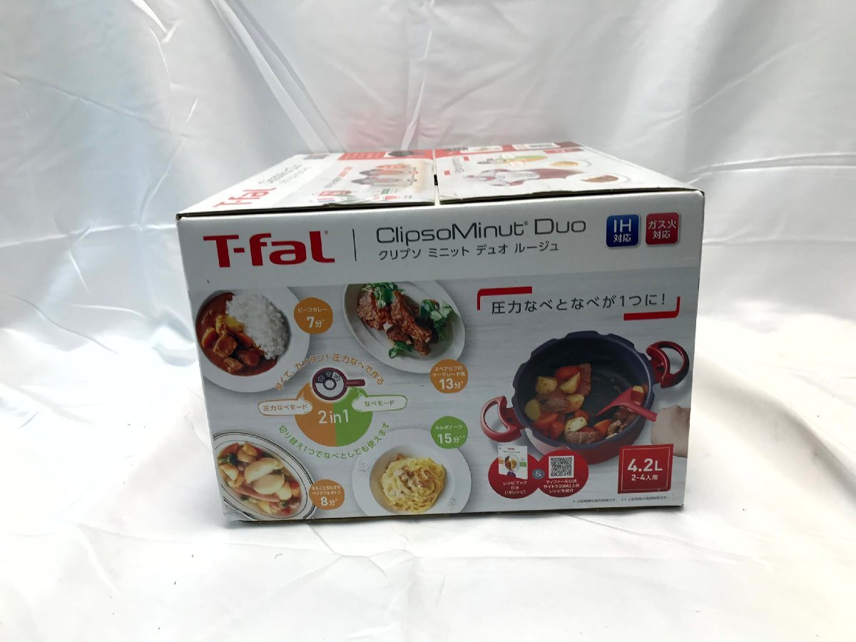| 【商品名、メーカー(ブランド)名】 T-Fal ティファール クリプソ ミニット デュオ ルージュ 未使用品 圧力鍋 【はじめに】 営業時間は平日 10:00~17:00までとなります。※土日祝休業 落札後の連絡は、取引ナビでお願い致します。 発送は佐川急便 飛脚宅配便のみです。 タイトルに「直接引取り」の文言がなければ来店対応不可です。発送のみの対応となりますのでご了承ください。 メール便やコンパクト便など佐川急便以外の発送は行っておりませんのでご了承下さい。 ※沖縄県他、離島地域(中継料金の発生する地域)へのお届けの際は送料着払い(配送会社指定の料金) での発送となります。 ※一部離島地域では着払い不可の地域があるため店舗より元払いで発送させていただきますが、別途中継料金をお支払いしていただく場合があります。 他商品との同梱発送はできません。あらゆる事故防止のために単品での発送となりますのでご了承ください。 領収書は発行しておりません。詳しくは下部の【領収書について】をお読み下さい。 商品に不良があった場合は「返品返金」にて対応致します。 交換や修理は行っておりませんので予めご了承下さい。 以下、全てお読み下さい。 【商品について】 当ストア商品をご覧頂き有難うございます。必ず最後まで説明文をお読み下さい。 いかなる場合でも内容以外の対応は致しかねます。 入札は内容に同意されたものとさせて頂きます。 こちらのお品物は【未使用品】です。 未使用 【状態ランク・商品状態】※当店査定基準参考下さい。 Sランク 【弊社管理番号】2200020487067