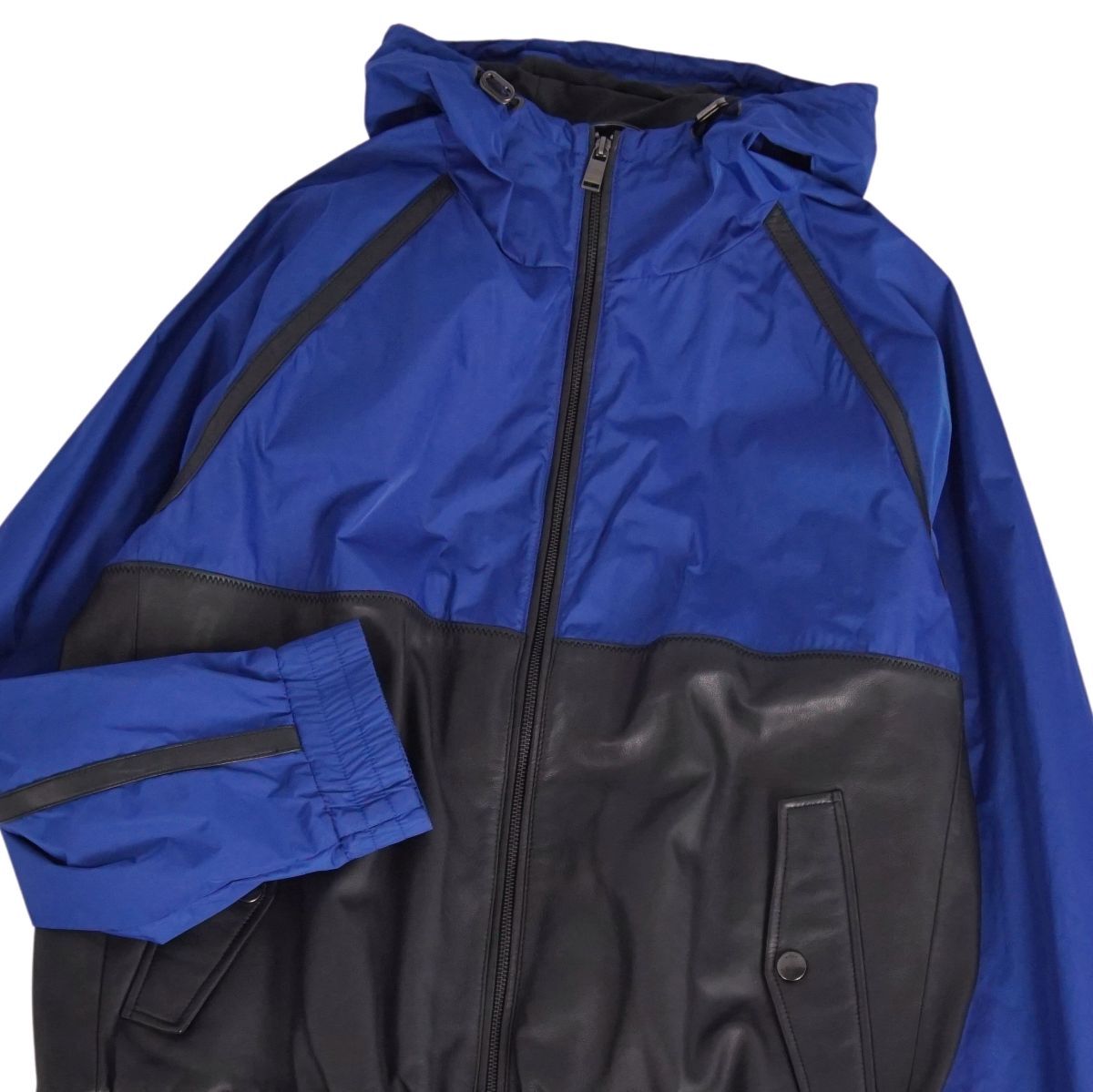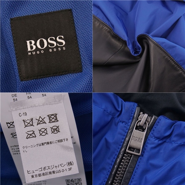 | 美品 ヒューゴボス HUGO BOSS ジャケット レザージャケット 切り替え ラムレザー アウター メンズ 54(XL) ダークブルー |
