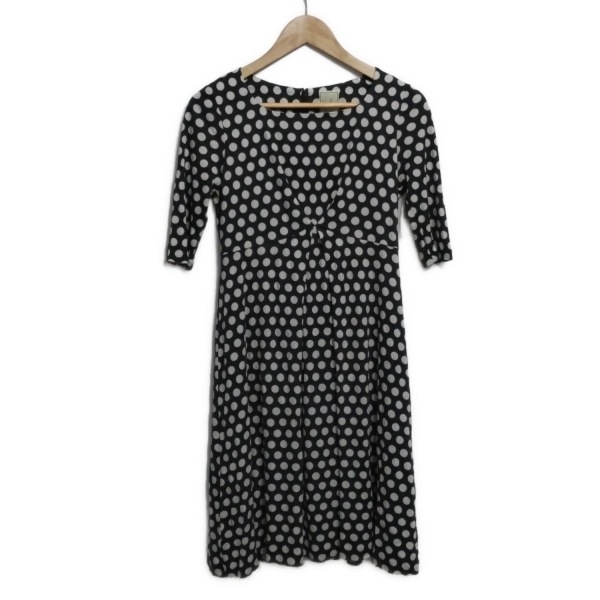 デザイン:クルーネック/半袖/ひざ丈/ドット柄