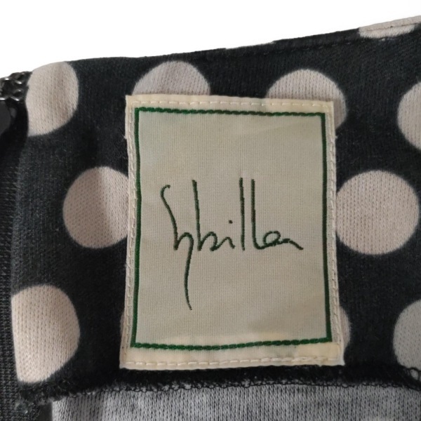 シビラ Sybilla サイズM - 黒×アイボリー レディース クルーネック/半袖/ひざ丈/ドット柄 美品 ワンピース