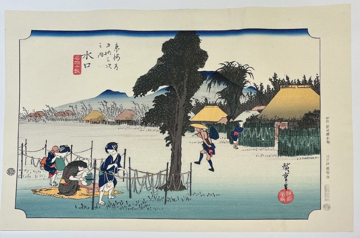【真作】歌川広重「東海道五十三次 水口-51」木版 保永堂版 浮世絵 錦絵【広重不朽の名作 日本が世界に誇る木版画 woodblock print】