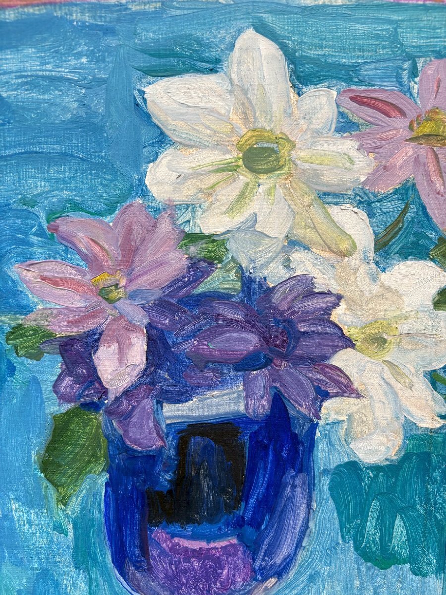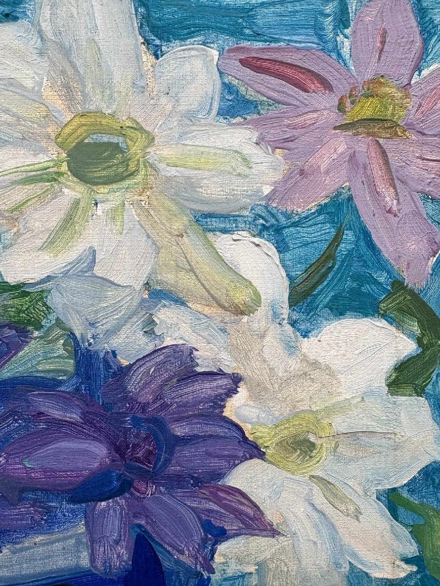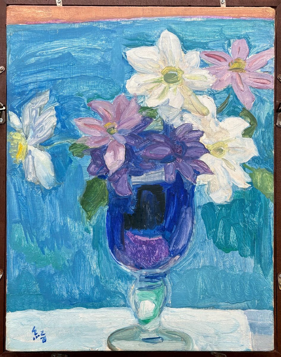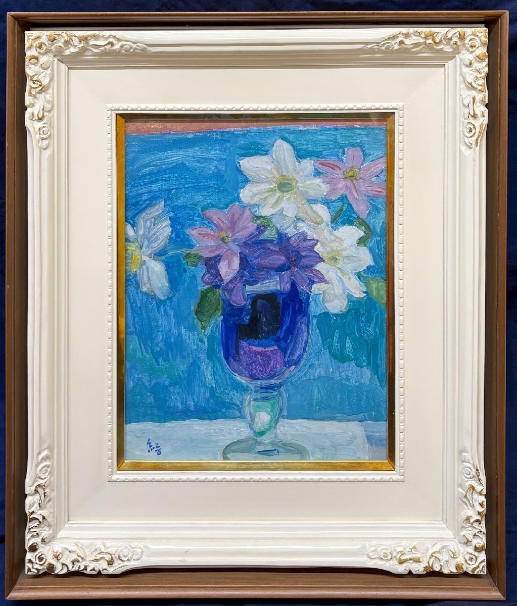 【真作】深沢紅子「てっせん」6号 油彩 額装【岩手県出身 岡田三郎助に師事 華やかではなくともたくましく咲く野の花や女性像を描いた】