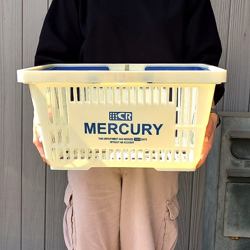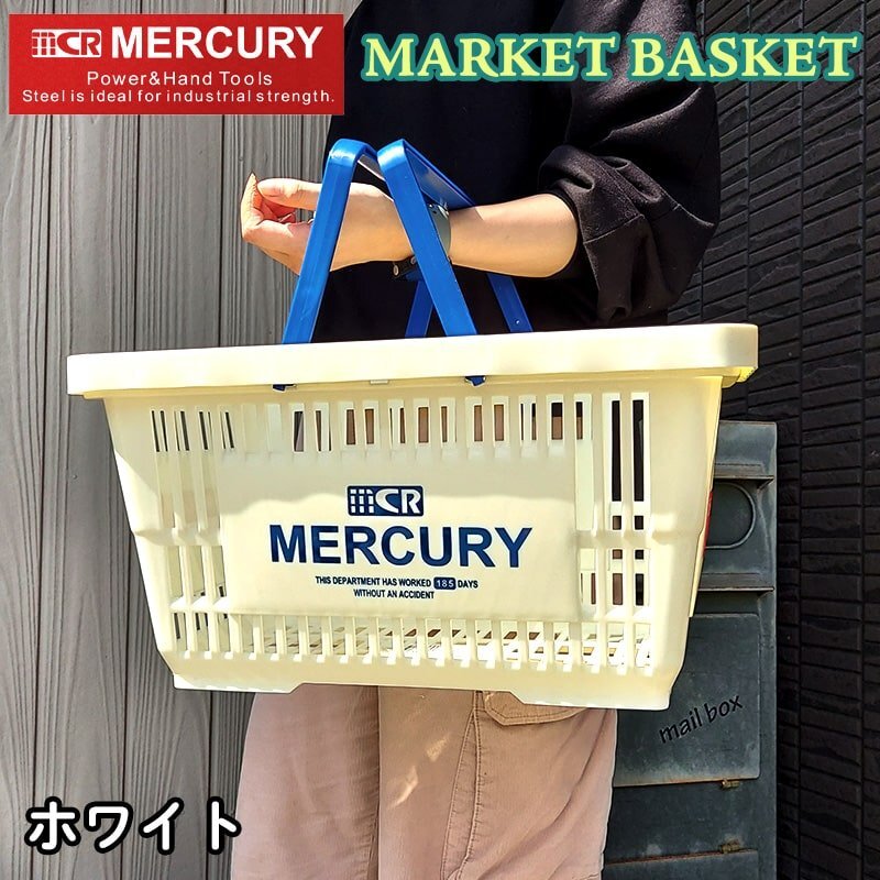 「MERCURY MARKET BASKET ホワイト」 マーキュリーのかわいい買い物かご型バスケットです! プラスチック製で軽量のため、持ち運びにぴったりなアイテム。 汚れや水に強く、お手入れが容易なため日常のご使用にも最適です。 アメリカンな配色とおしゃれなロゴデザインが特徴で、インテリアとしても活用できます。 カフェやバー、店舗の小物入れとしてもおすすめです。 いかがでしょうか。 |