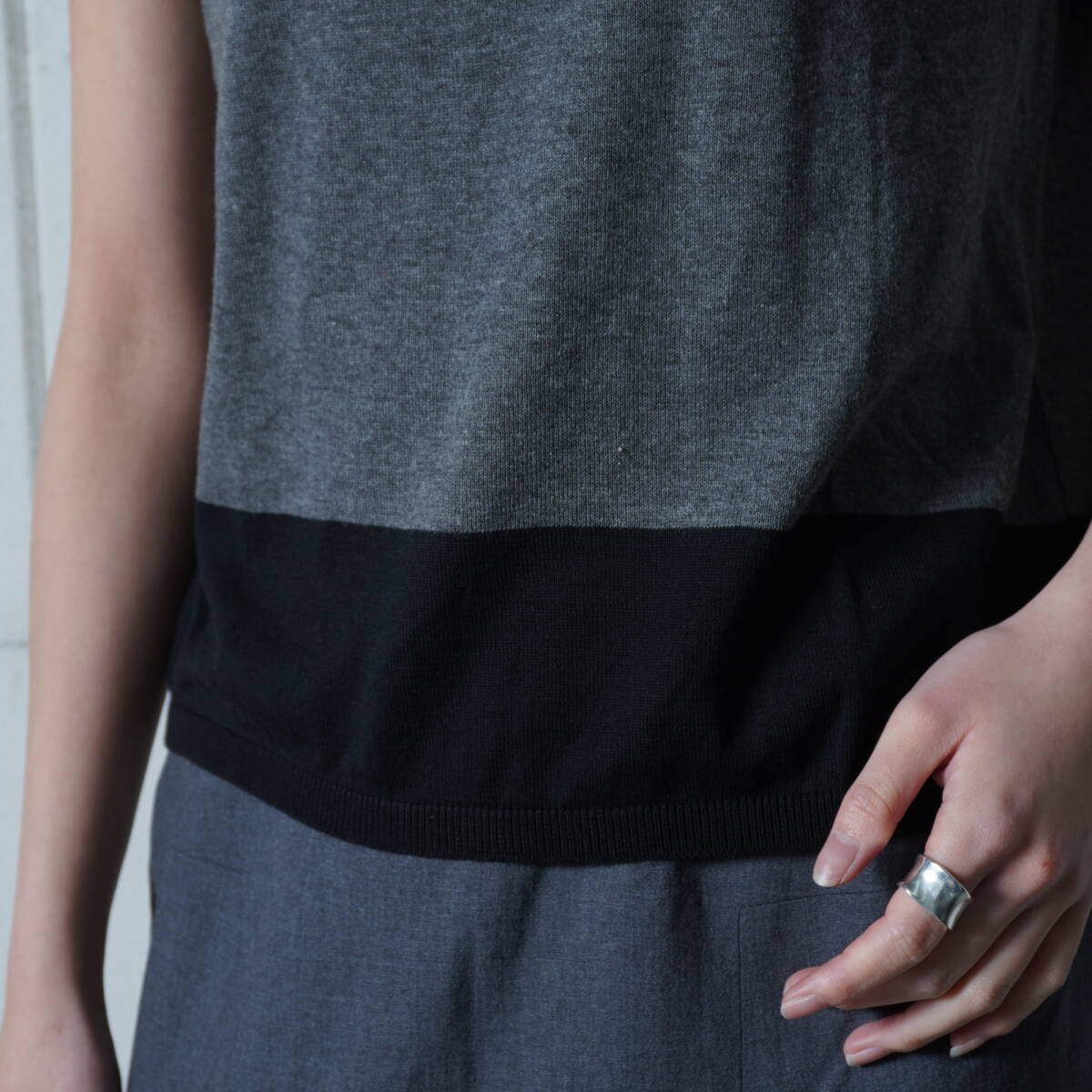【COMME des GARONS】コムデギャルソン 極美品 96年製 バイカラーコットン半袖ニット gray&black