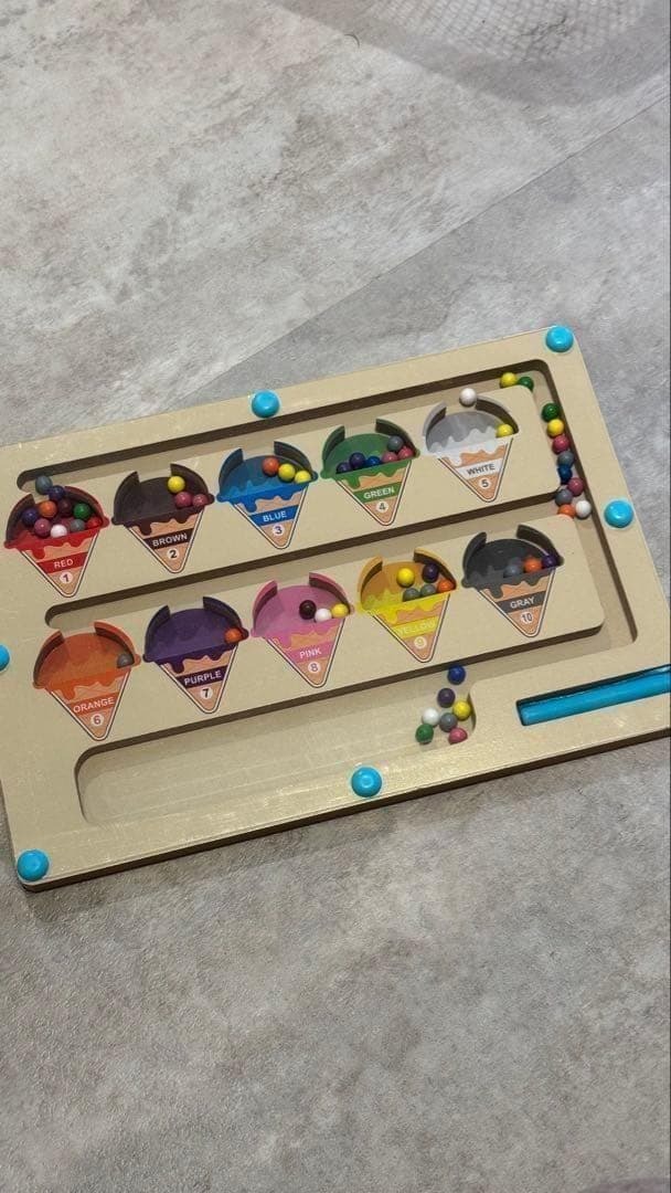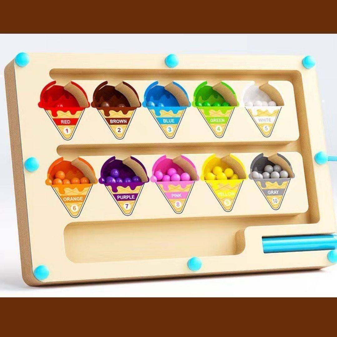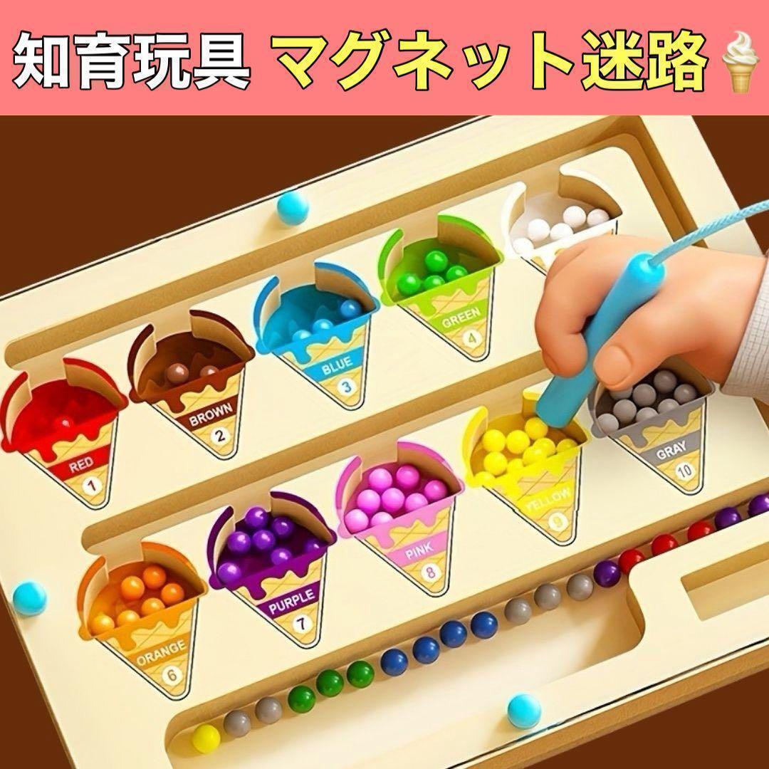 モンテッソーリ 木製 知育玩具 マグネット 迷路 アイスクリーム