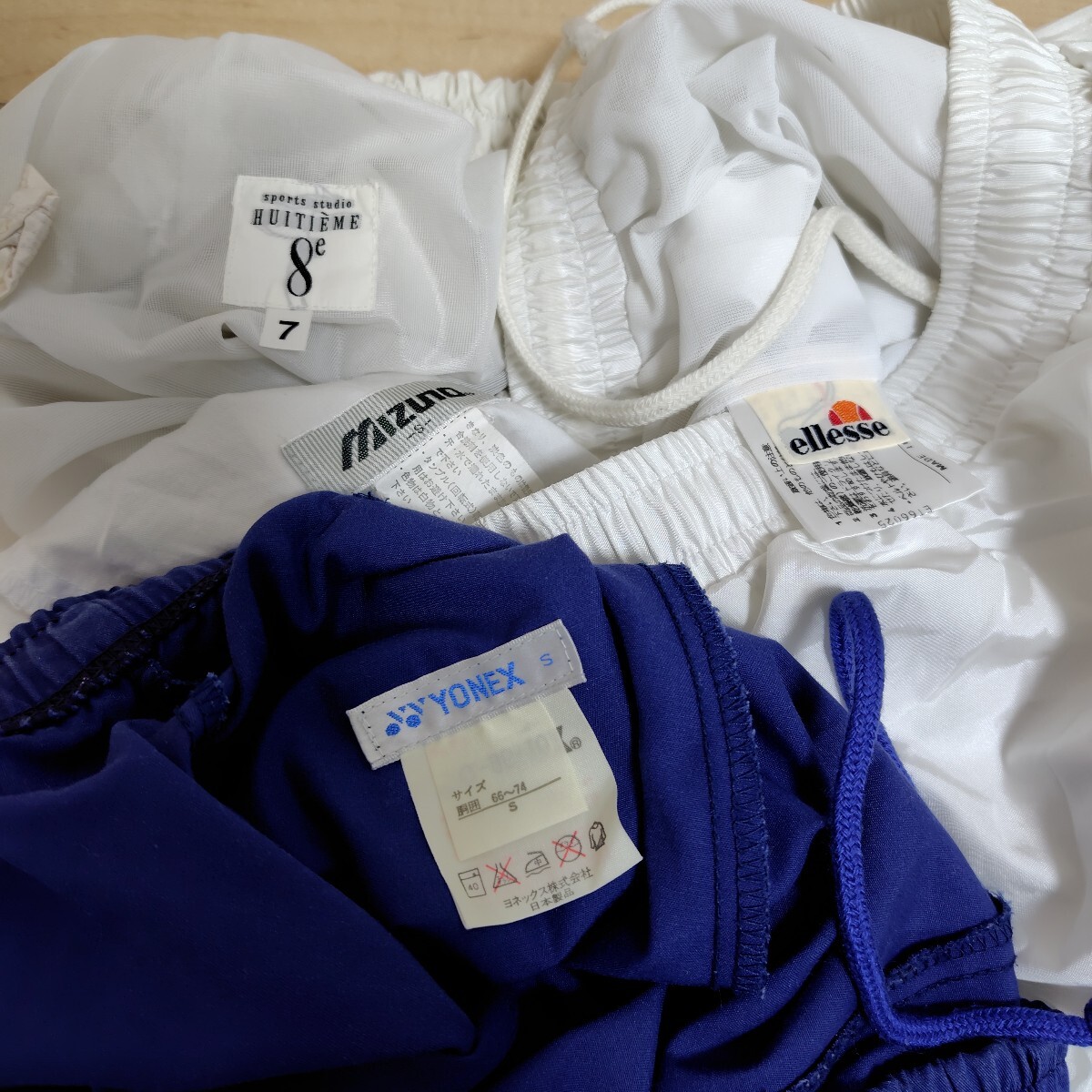 YONEX サイズS、HUITIEME サイズ7、ellesse サイズM、mizuno サイズSの4枚セットです。