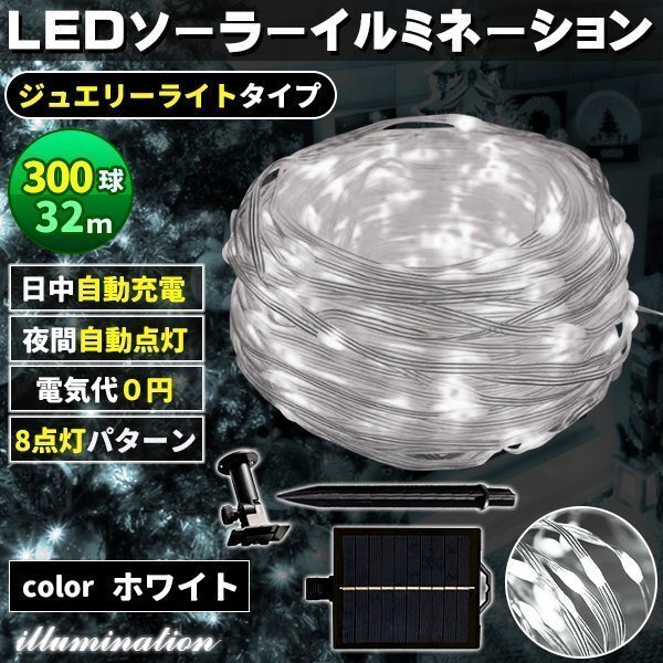 ソーラー イルミネーション 屋外 クリスマス ジュエリー屋外用 イルミネーションライト 300球 ホワイト