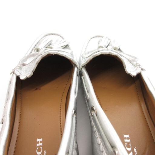 コーチ COACH タッセルローファー モカシン スリッポン スカラップ レザー 36.5 シルバーカラー /JS レディース
