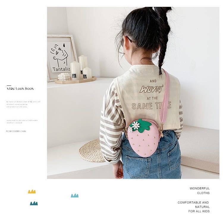 高級感がありながらも可愛らしくてオシャレなイチゴ型のポシェットはお子様のお出掛けや誕生日、イベントごとに最適です(^^)