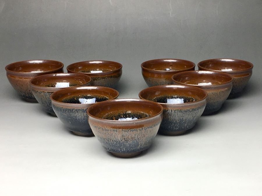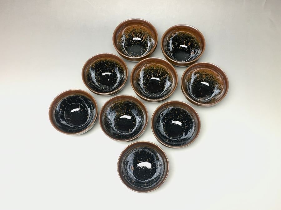 ◇作品     天目釉小碗九客