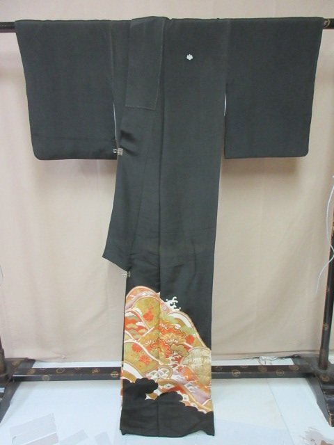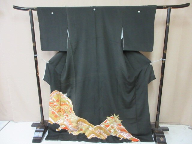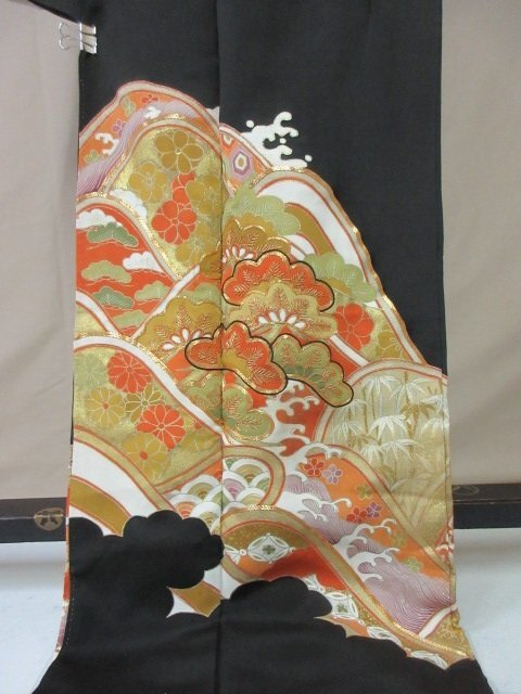 | 商品名 | 1円 良品 留袖 正絹 着物 縮緬 式典 和装 比翼付 紋付 遠山 波 松 雲 草花 高級 袷 身丈166cm 裄65cm【夢職】★ |