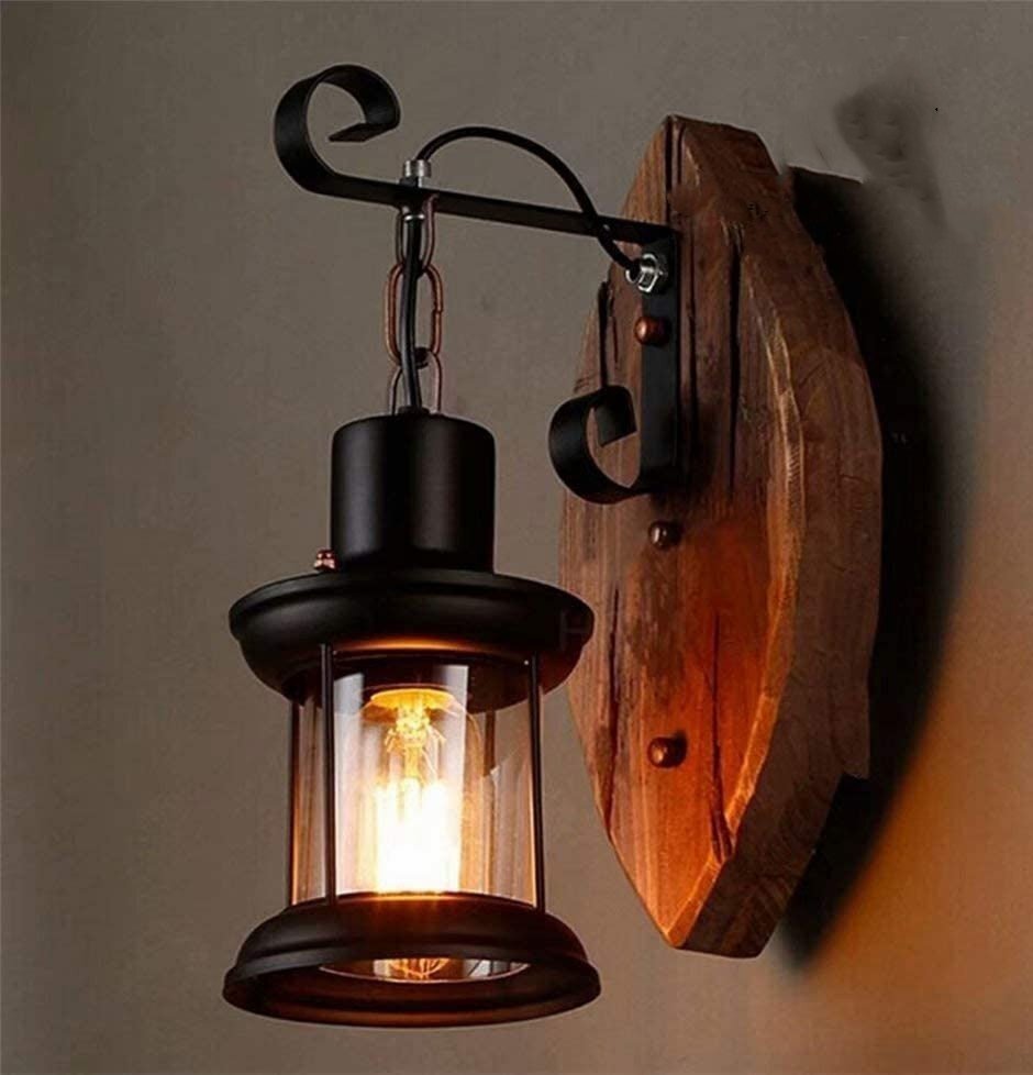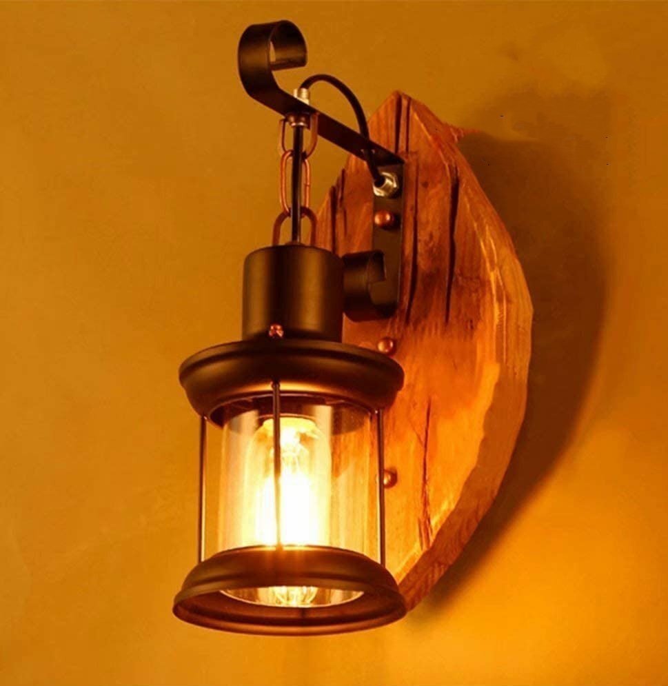 新品★ライト ブラケットライト ランタン型 インテリア アンティーク おしゃれ 北欧 天然木 ガラス 壁掛け照明 玄関灯 室内