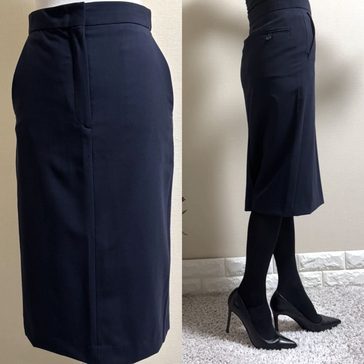 通年対応、ストレッチウールスーツ生地の膝下ペンシルタイトスカートです。