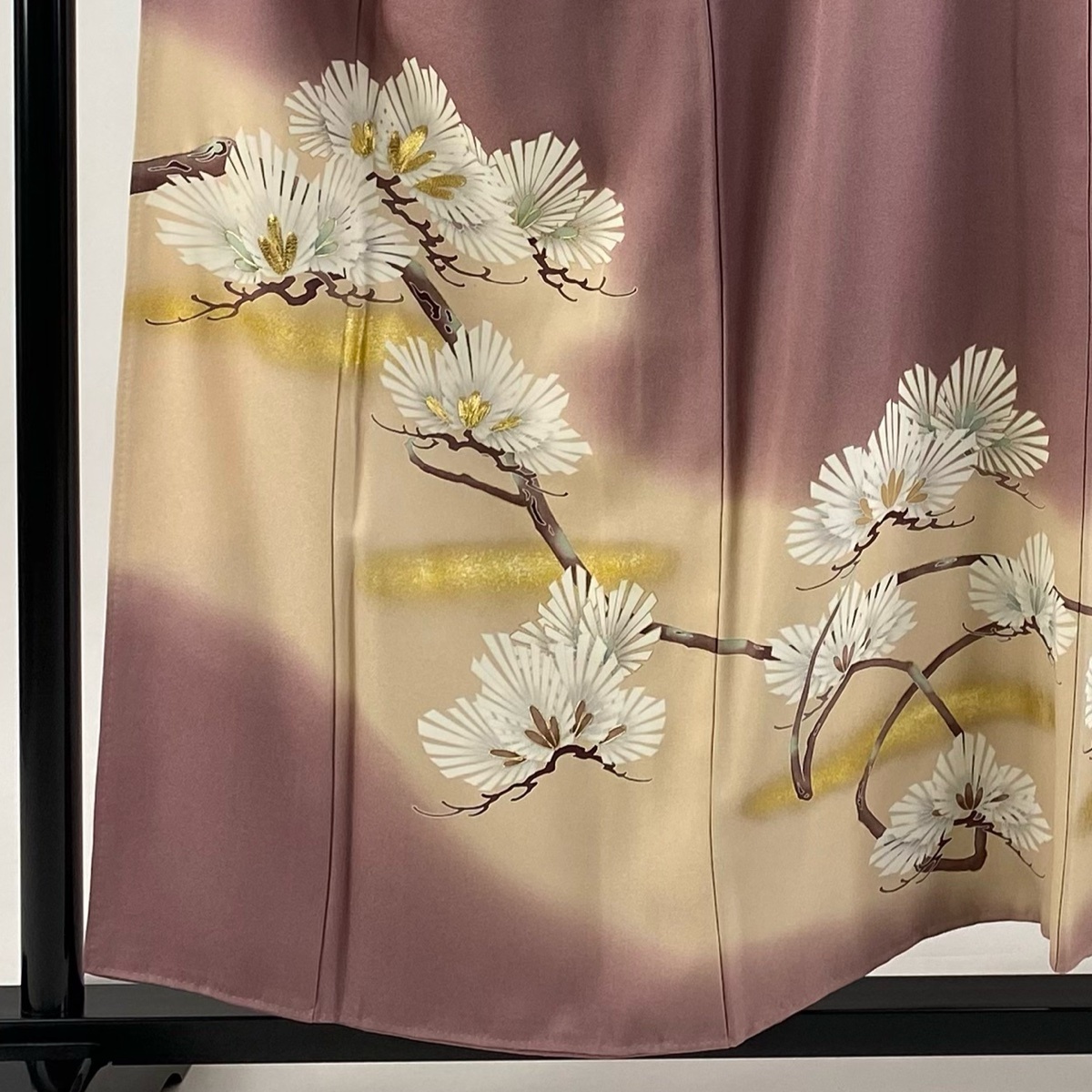 | 色留袖 秀品 若松 霞 金糸 金彩 紫 袷 身丈155.5 裄丈64 M 正絹 【中古】 |