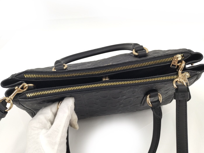 | ◆商品情報 | ・カラー:ブラック ・素材/ライン:レザー ・サイズ:最大約 W29×H20×D13(cm) ・ショルダーの長さ:最大約100-118(cm) ※多少の誤差はご了承下さい。 ・外側:収納部×2 ・内側:オープンポケット×2 |