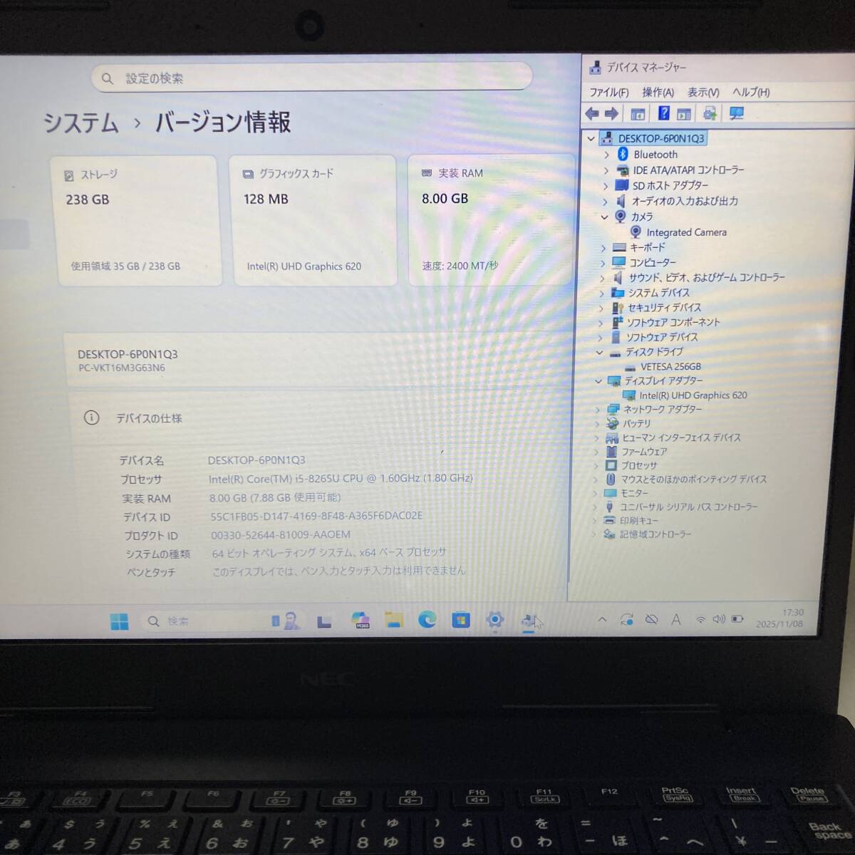 | 商品説明 | 整備中古品となります。 一部訳ありのため処分価格で出品いたします。 ・高速SSD換装済み 起動かなり早いです。 ・OS Windows11 ・Office ライセンス認証済み ・フルHD(1920×1080)液晶ディスプレイ ・Webカメラあり ※電源アダプタ付属しません。 【訳あり内容】 ・ディスプレイに一部白ムラがあります。 ・タッチパッドに一部塗装剥がれがあります。 【商品仕様】 商品名:VersaPro タイプVM VKT16/M-6 型番:PC-VKT16M3G63N6 CPU:Core i5 8265U 1.6GHz メモリ容量:8GB ストレージ容量:SSD256GB OS:Windows11 pro 画面サイズ:14型 光学ドライブ:なし 無線LAN:あり ※中古品につき、細かいすり傷、汚れなどはご了承お願いいたします。 ※バッテリー状態未確認になります。消耗品につき劣化している可能性あります。 ※精密機器につき、出品時(動作確認時)から時間が空きますと思わぬ不具合が起きる場合があります。その際代替品、キャンセルのご提案をさせて頂く場合がございます。ご了承お願いいたします。 |