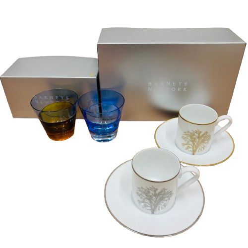 ●【BARNEYS NEWYORK/バーニーズニューヨーク】ロックグラス ペア カップ&ソーサー×2客 おまとめ★29505