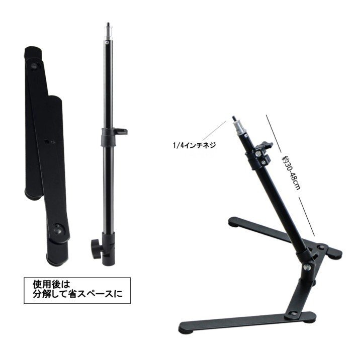 | 本体部分の伸縮も可能で伸ばせば最大約48cm程の長さまで伸び ※三脚以外のアクセサリは付属しておりません。 |