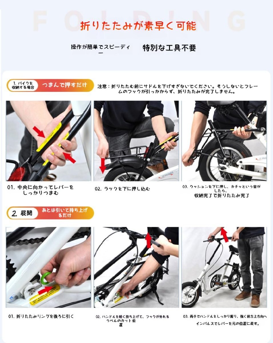 【多機能デザイン】自転車 自転車 12インチは 異なる身長のユーザーのニーズを満たすために選択することができまする種類の都市の複雑な道路状況に適応し より簡単かつ楽に乗ることができます 最大200キロの荷重をサポートすることができ 大人と学生のグループの使用のニーズを考慮する
