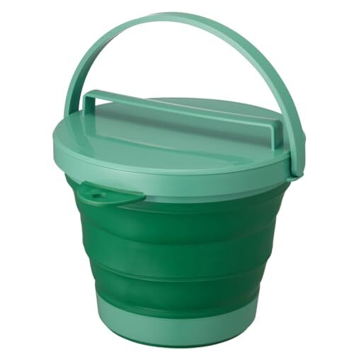グリーン イセトウ(Isetou) 折りたたみバケツ ソフトバケツ(フタ付き) グリーン 8L 幅32.8×奥行30.0×高さ8.