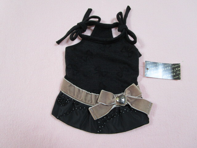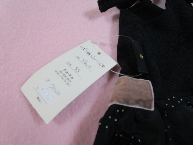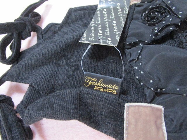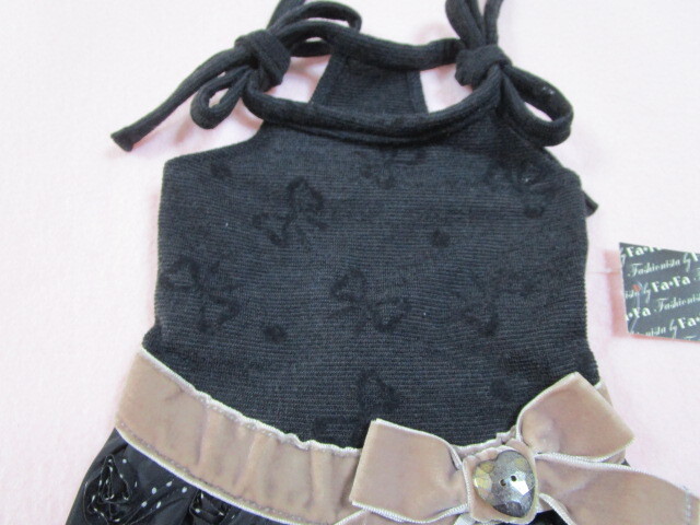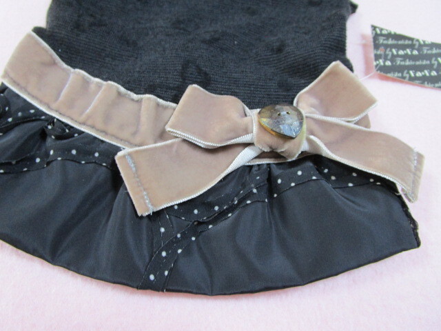 Fashionista Fa*Fa SSサイズ 胴回り33㎝ リボン柄 バルーンワンピ ブラック タグ付新品 定価7020円