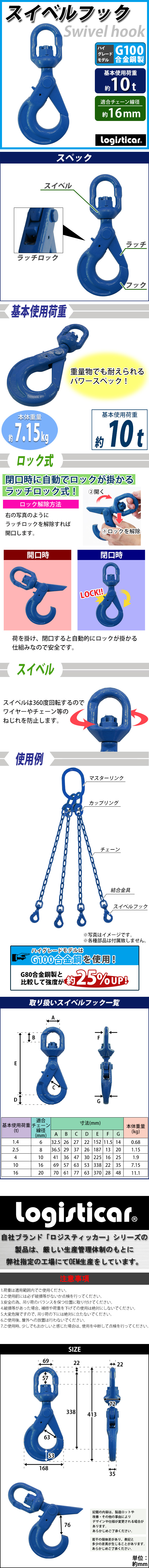 | 商品名 | 送料無料 スイベルフック 使用荷重約10t 約10.0t 約10000kg G100 鍛造 ハイグレードモデル フック スイベル 回転 吊り具 ロッキングフック ロックフック セルフロッキングフック ラッチロックフック アイタイプ 重量フック 吊り チェーンスリング ワイヤー 青 shook10tg100b |