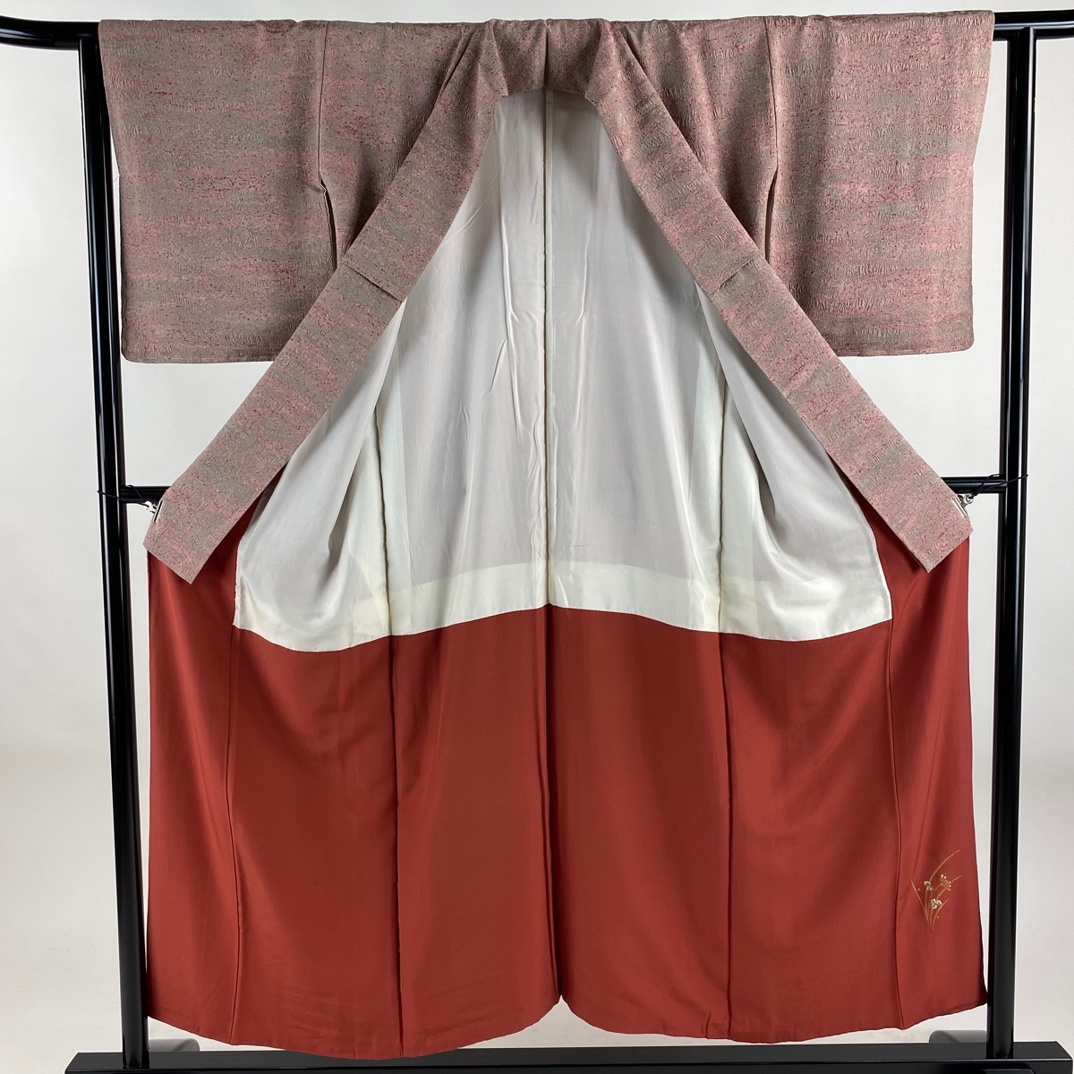| 小紋 美品 秀品 陶彩染 霞 ぼかし ピンク 袷 身丈152 裄丈61.5 S 正絹 【中古】 |