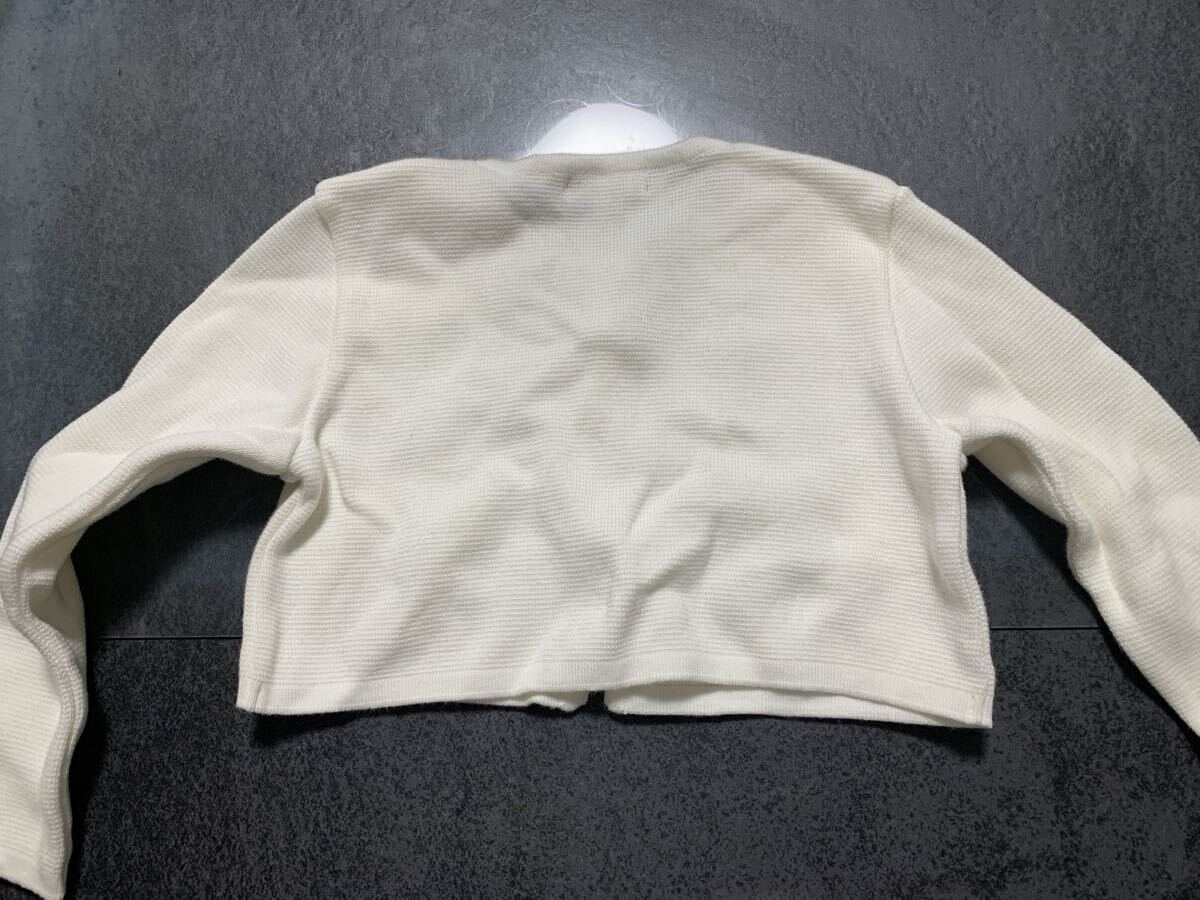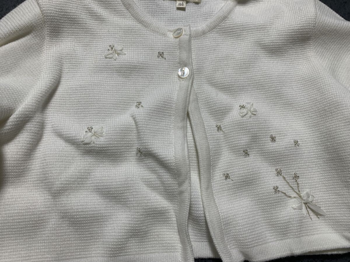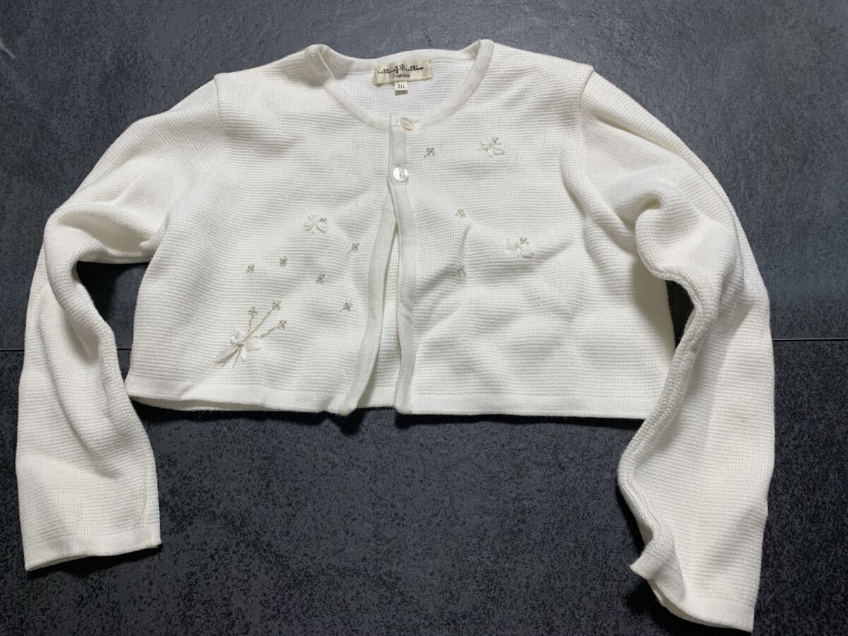 ミニ丈のボレロ風でワンピースの重ね着に非常におすすめです。上品なビーズ刺繍入りでフォーマルでも活躍してくれそうな一品。