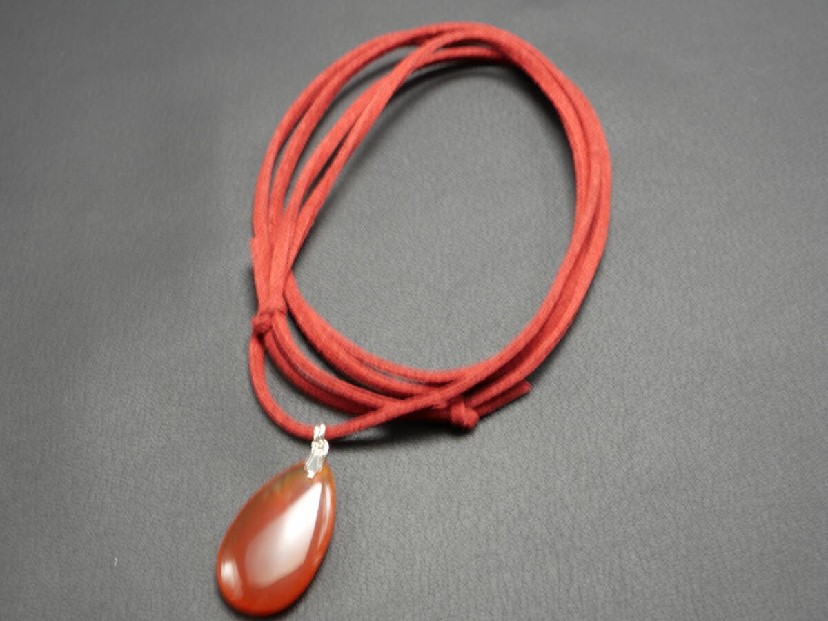 大粒赤瑪瑙の1粒革紐ネックレス 485