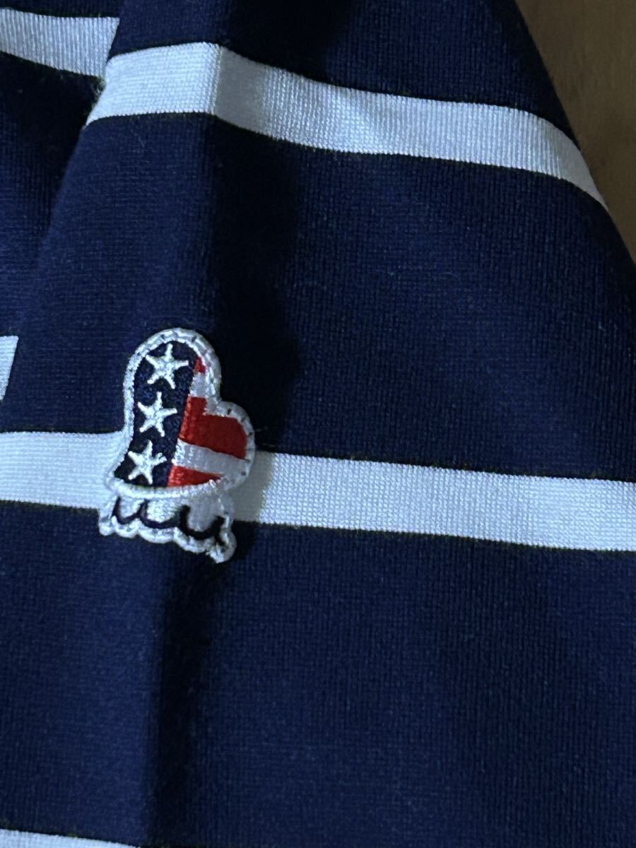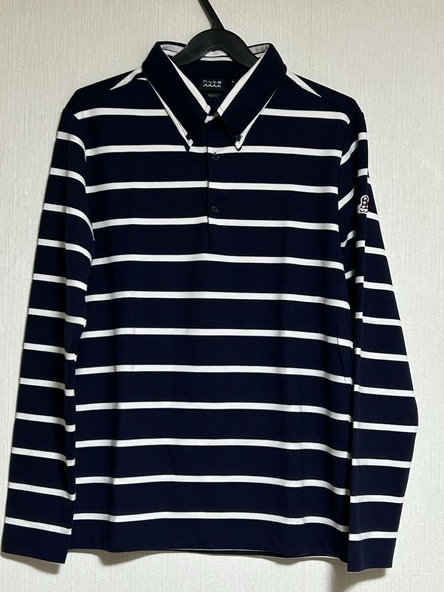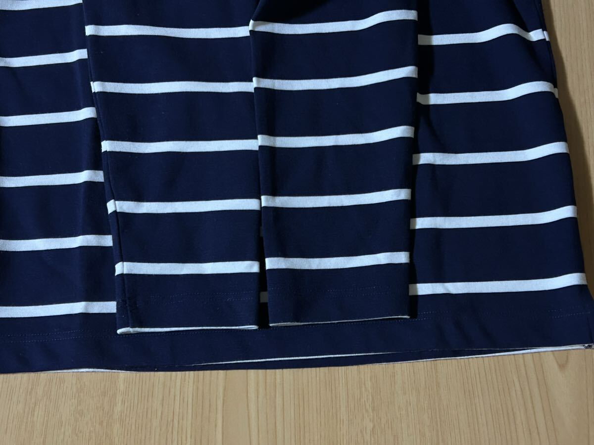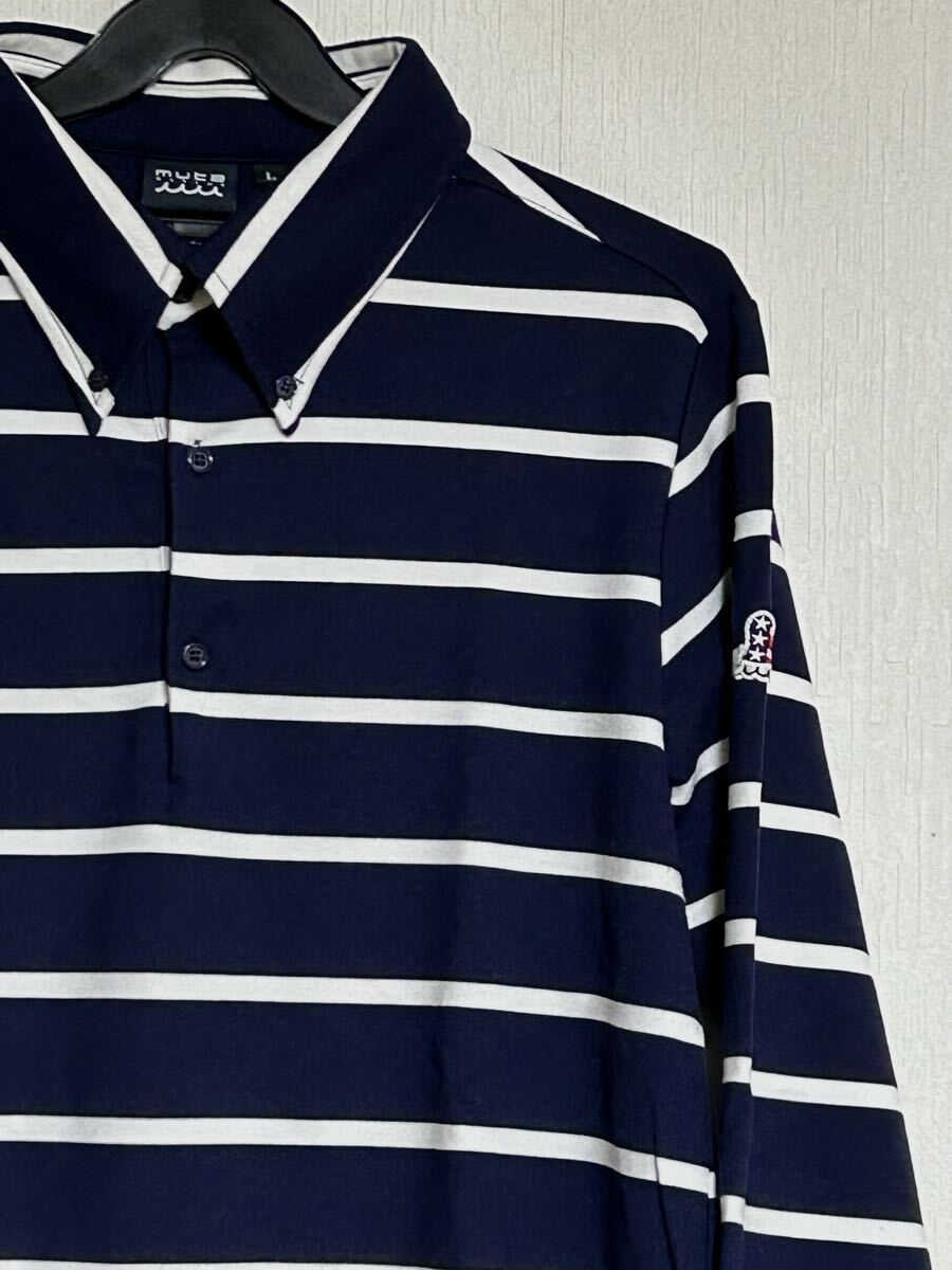合わせやすいボーダー柄。素材はレーヨンがメインで手触りが良くポリウレタンを含みますので伸縮性があります。ゴルフにはもちろん、普段の着用でもとてもオシャレです。