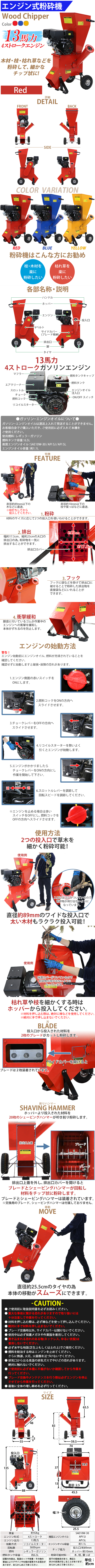 | 商品名 | 送料無料 粉砕機 ウッドチッパー ガーデンシュレッダー エンジン式 最大粉砕径約89mm 13馬力 13HP レッド 強力 パワフル ガーデンチッパー チッパーシュレッダー チッパー 粉砕器 家庭用 業務用 ガーデニング 農業 造園 植木 粉砕 木材 枝 葉っぱ 赤 chipperte0413rd |