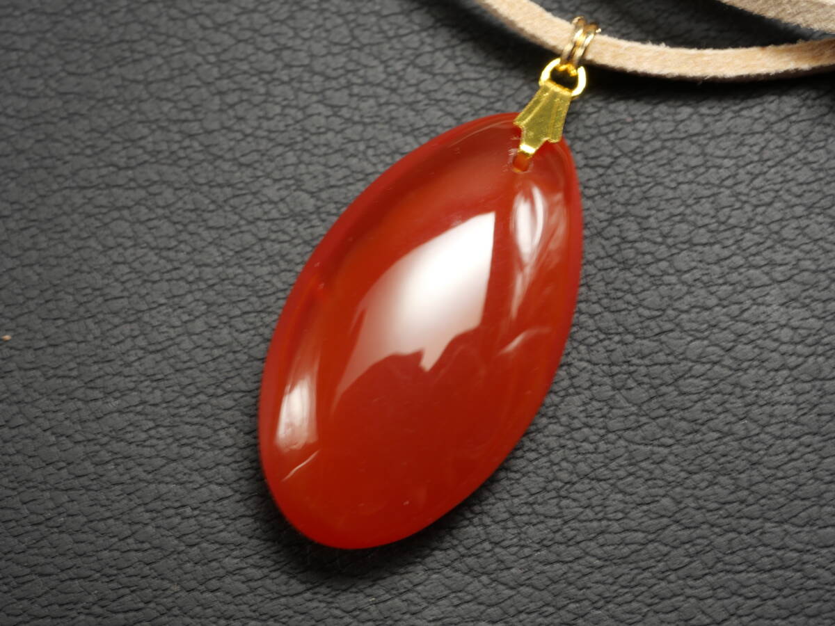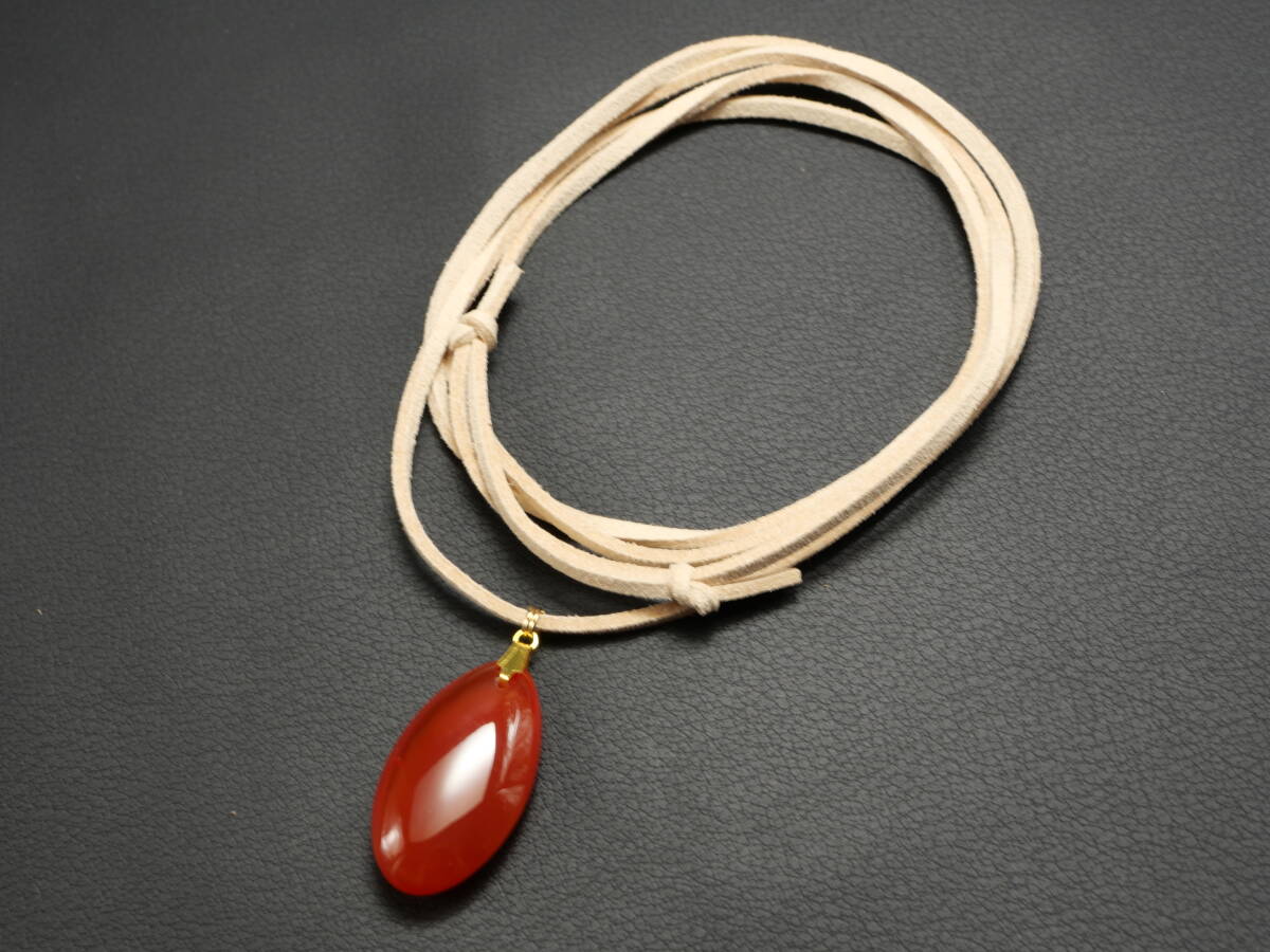 大粒赤瑪瑙の1粒革紐ネックレス 483