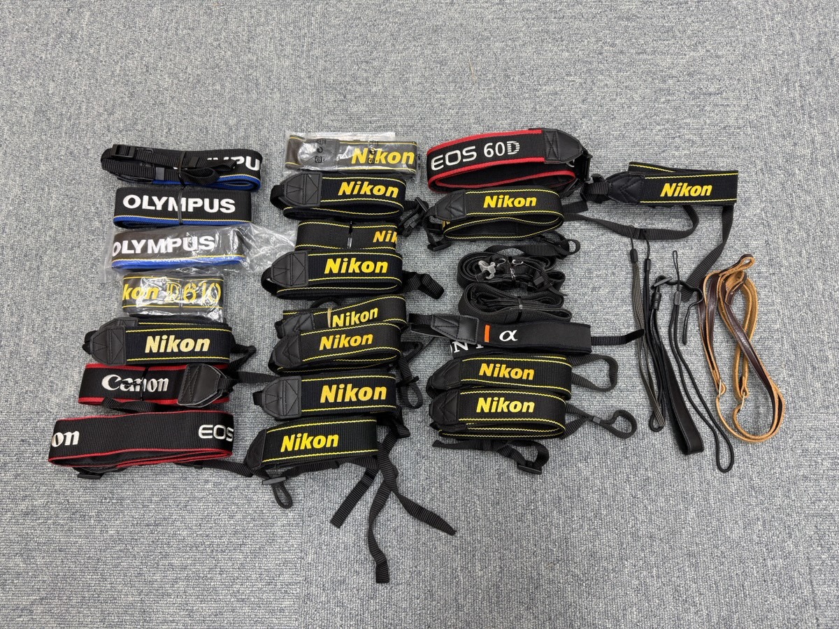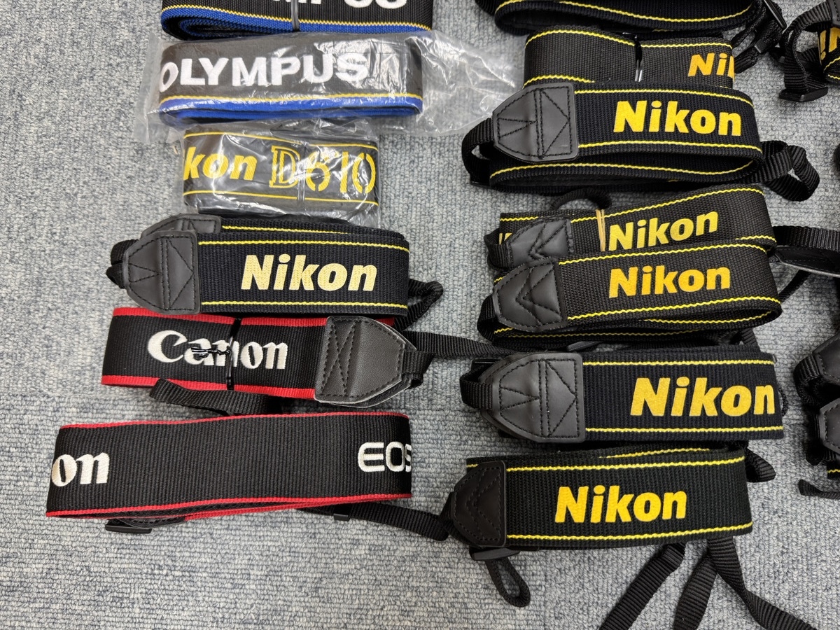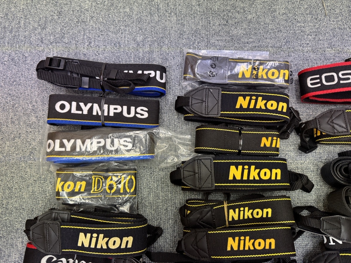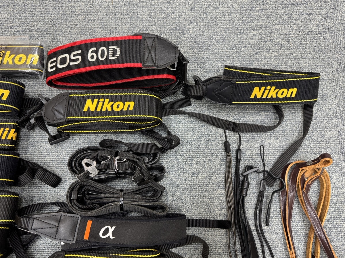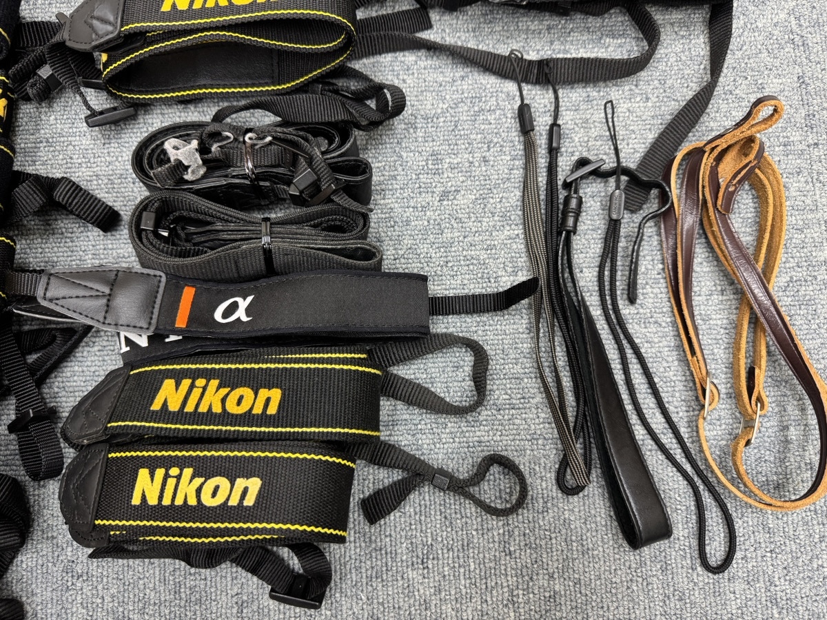 合計のストラップ本数は数えておりませんが、Nikonのストラップ中心に30本前後はあるんじゃないかと思います。
