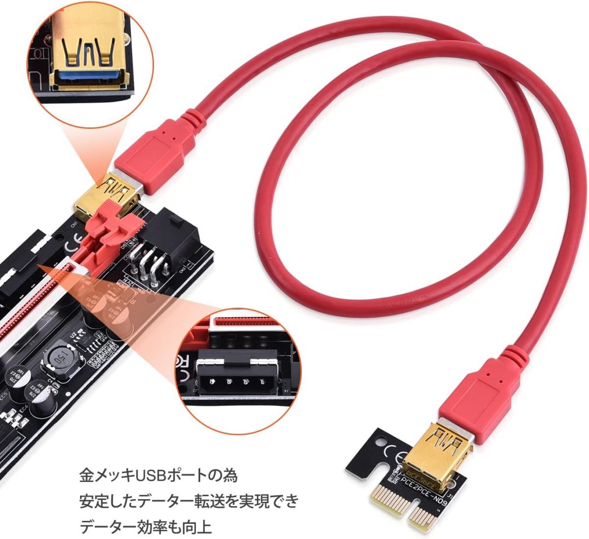 PCI-E ライザーカード USB3.0 8コンデンサ マイニング用 拡張カード