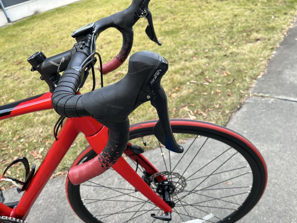 | Merida scultura disc 200 sizeSの出品です。 カーボンのロードバイクです。 ディスクブレーキのモデルです。 乗りやすい自転車です。 艶もあり綺麗ですが中古ですので日焼け、小傷等あると思います。 出品にあたり消耗品を交換しました。 ペダルは次の自転車に移行するので外しますので付属しません。 即決の場合は写真のペダルを付属致します。 フレーム Ssize コンポ Claris R2000系 クランク FSA ディレイラー FD-R2000 RD-R2000 サドル 純正 バーテープ新品 ペダル GIANT 即決のみ サイコン キャットアイワイヤレス 165~175位の方がちょうどいい感じだと思います。 当方171cm C-C 500mm C-T 530mm カタログ重量 9.6キロ 間違えてる場合もありますので、詳しくは写真で確認して下さい。 ご希望で、譲渡書類おつけ致します。 大型商品ですので、なるべく手渡し希望です。 合わせて頂けるなら 茨城県古河市~茨城県下妻市ならどこかで手渡しも可能です。 自宅が駅近なので、乗って帰る事も可能です。 以前都内の方が乗って帰られました 郵送の場合現在ダンボールが無いので知り合いの自転車店にて手に入れてきますので、ダンボール代として2000円ご負担をよろしくお願いいたします。 発送する場合お時間を頂きます。 高額商品の為、現車確認歓迎します。 現車確認なしの場合はノークレームノーリターンでお願いします。 10枚しか写真を掲載出来ない為、 追加の写真、商品の質問、現在の価格より値引き交渉等、受け渡し場所等、 などなどすぐ連絡の繋がるLINE sk6456までご連絡下さい。 | |||