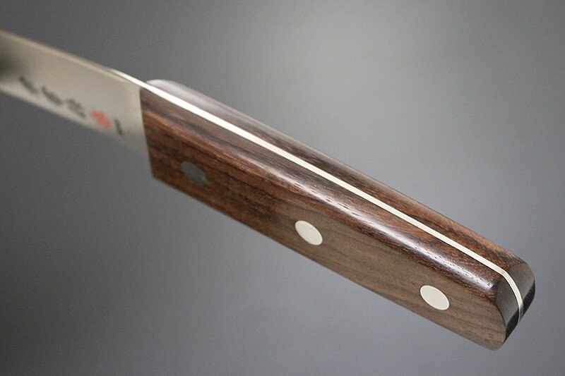 天然木ローズウッドのハンドルは、いわゆる合板材よりも軽くて滑りにくい性質があり「使い心地が違う」と評価されています。